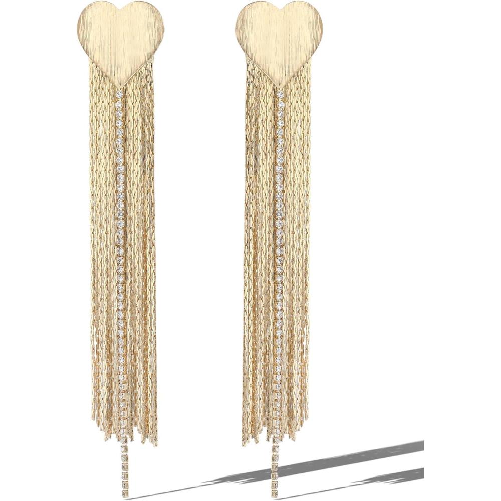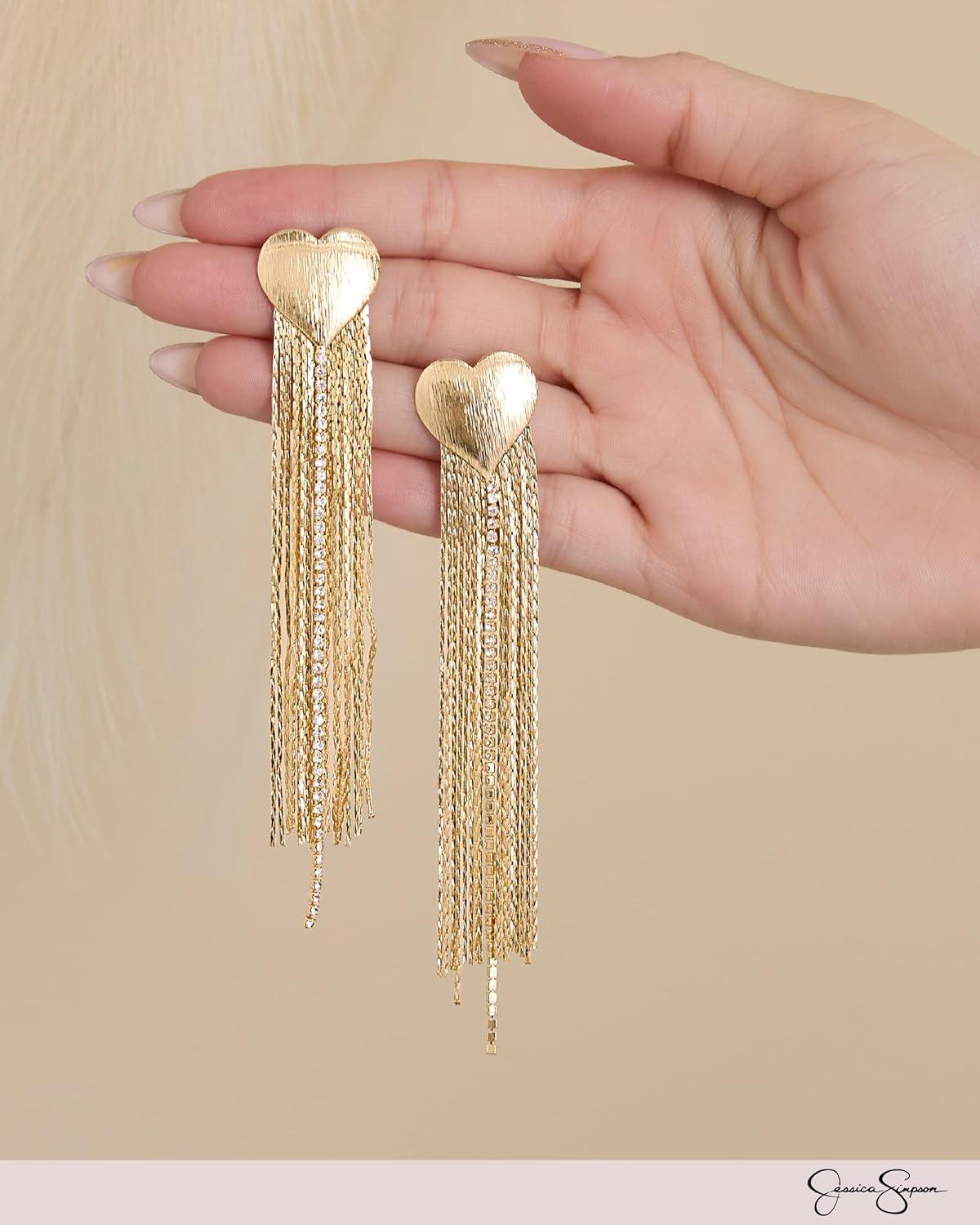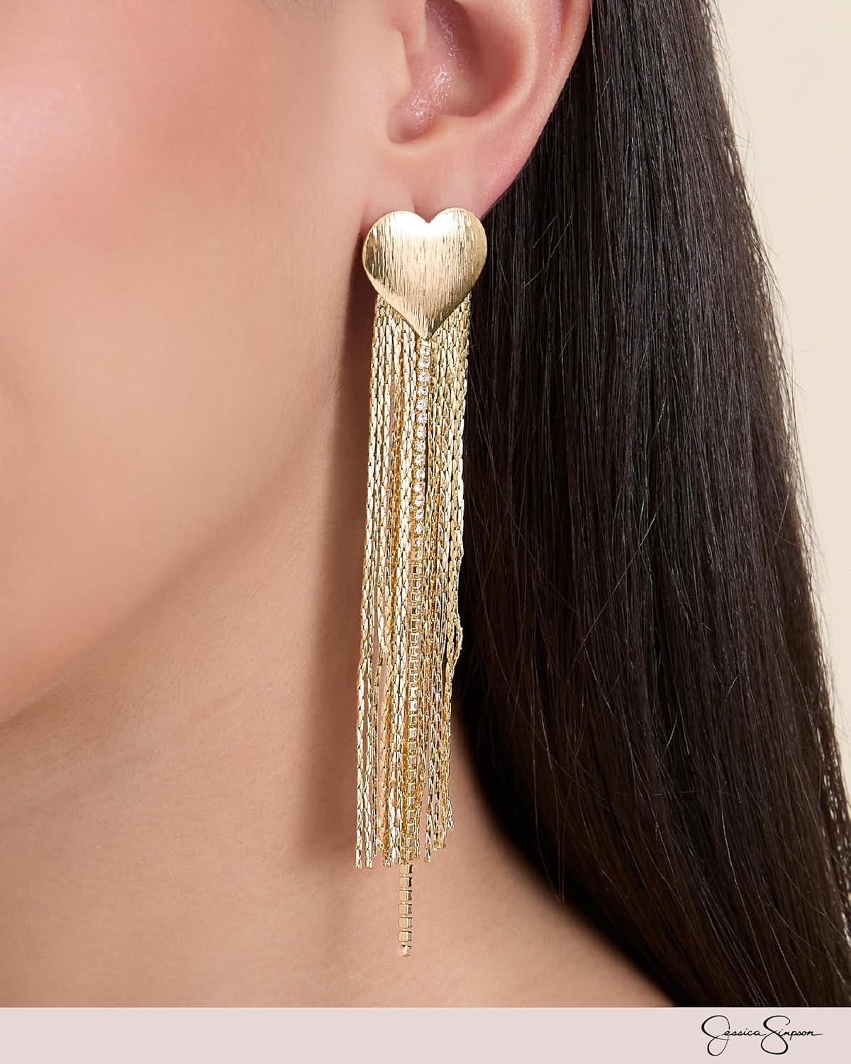 Jessica Simpson Dangle Chain Earrings for Women, Silver or Gold-Tone Fringe Earrings with Crystals(Gold Heart)