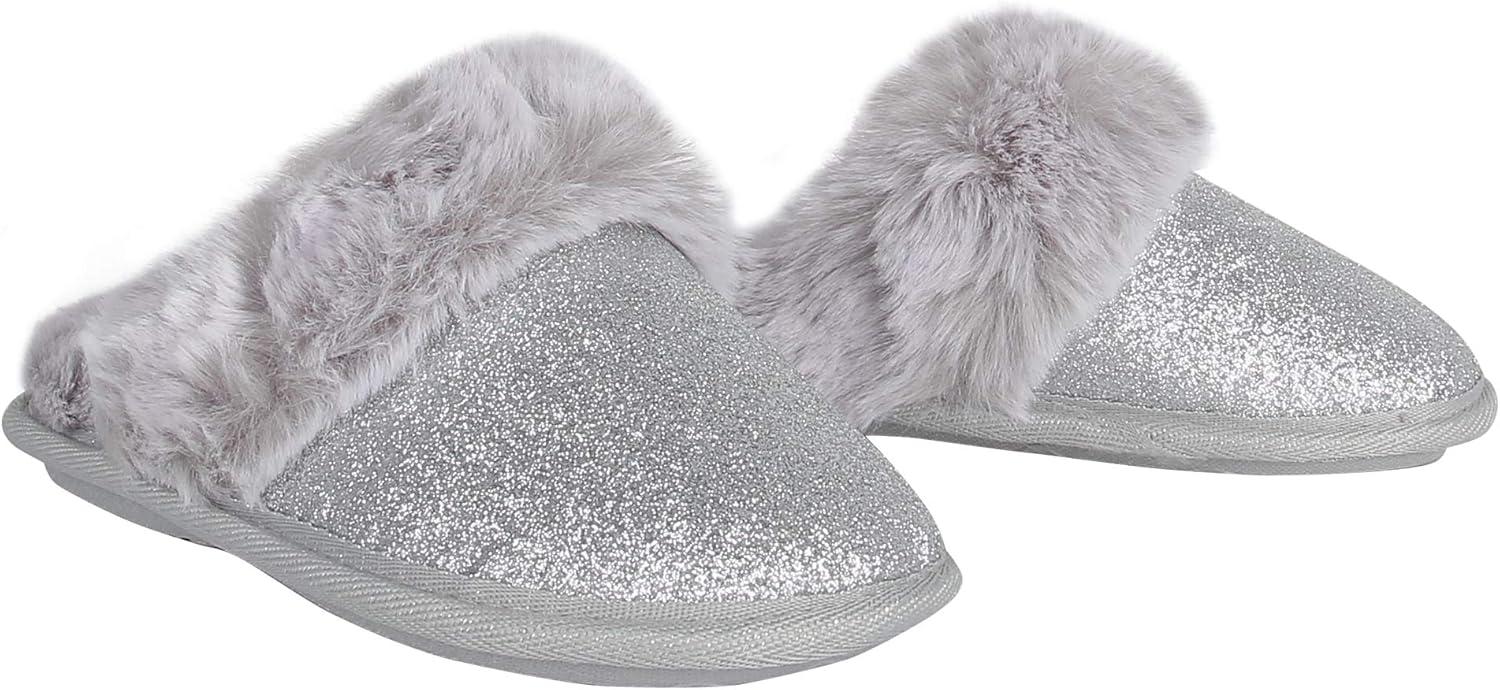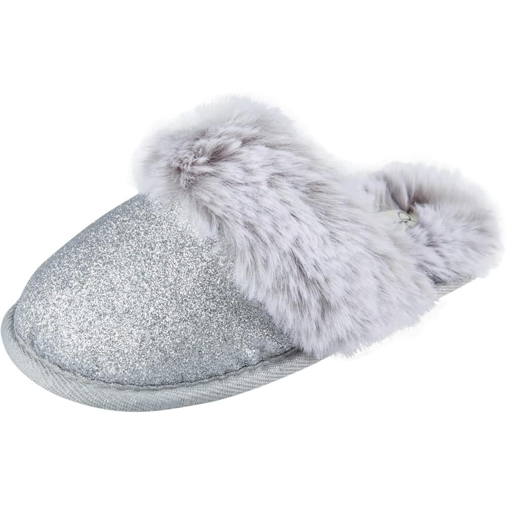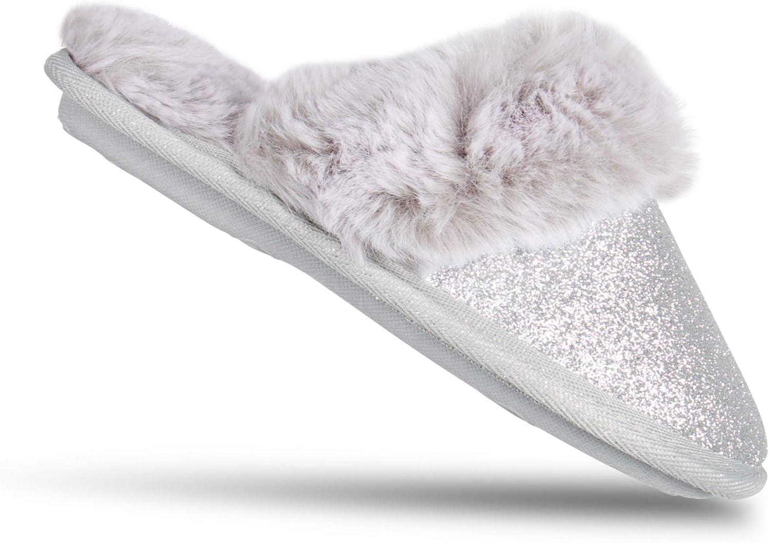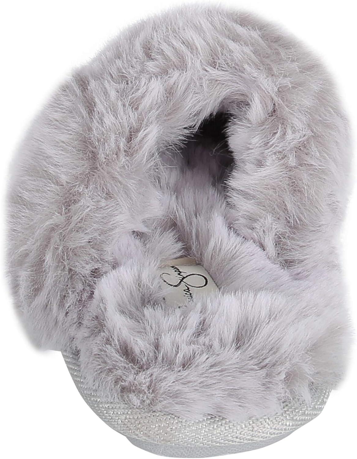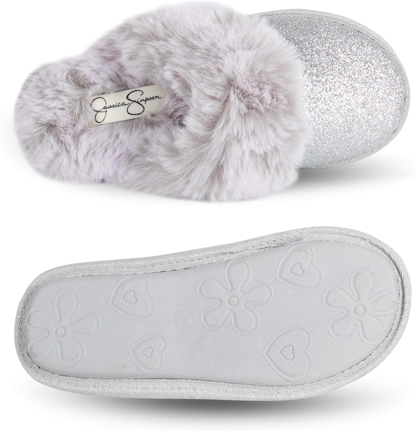 Jessica Simpson Girls Comfy Slippers – Cute Faux Fur Slip-on Shoes Memory Foam House Slipper(Silver)