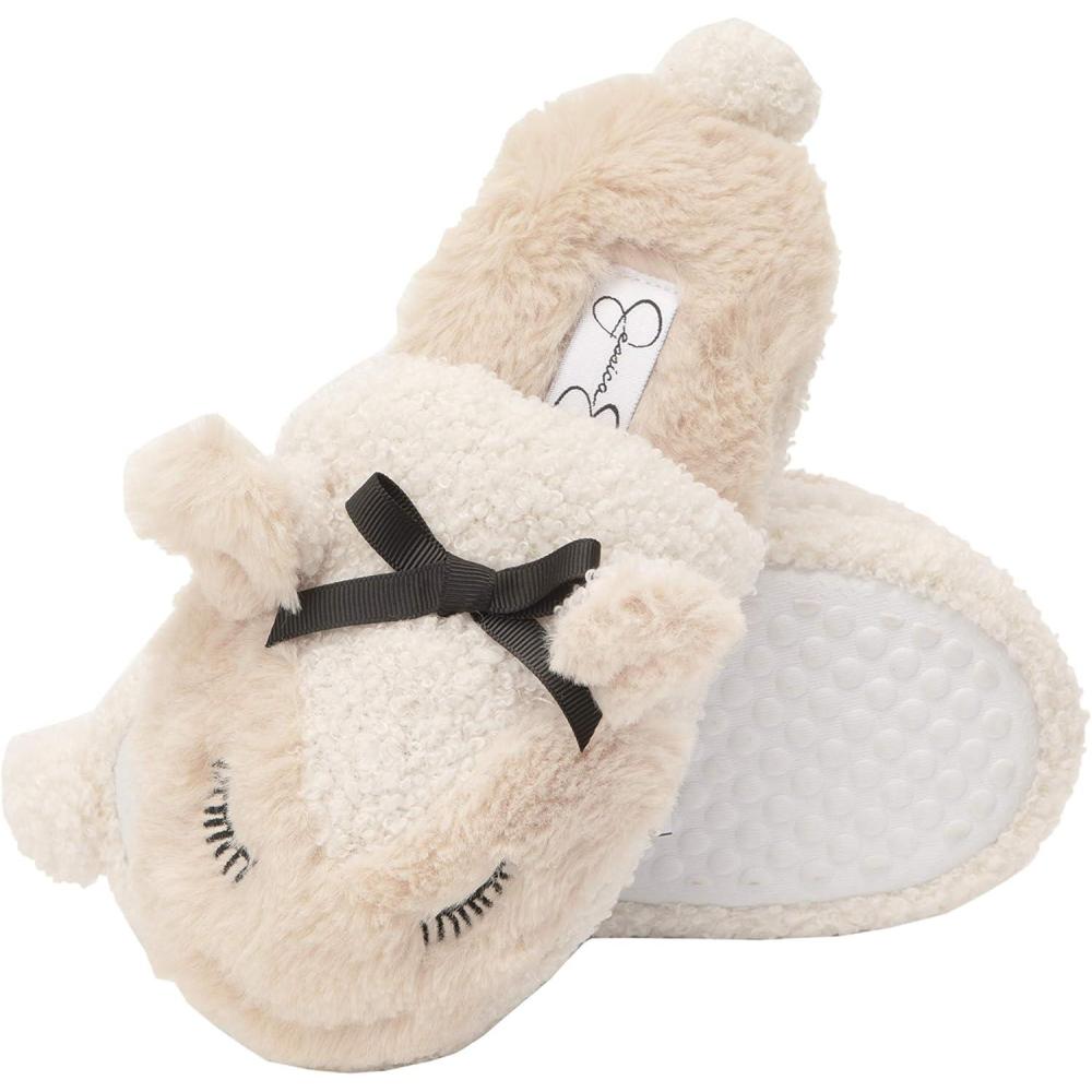 Jessica Simpson Girl’s Cute and Cozy Plush Slip on House Slippers with Memory Foam(Ivory Lamb)