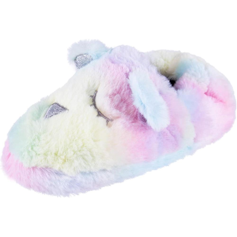 SIZE UP: This slipper runs small. Please choose a size larger than your daughter or granddaughter would normally wear. See size equivalents below and size up. . FABULOUS FIT: Her little feet will be feeling pampered in no time. Available in size Small (11-12), Medium (13-1), Large (2-3), and XLarge (4-5). . ADORABLE AESTHETIC: These slip-on house shoes feature a classic scuff design- perfect for doing homework, watching her favorite show, or having fun at a slumber party. These slippers are not only beautiful to look at, but feel amazing with every step. . CUTE & MAGICAL DESIGNS: Offered in a variety of styles including mermaid, unicorn, and cuddly lamb, your little one is sure to get constant compliments on her adorable new slippers. . STURDY SOLE: The bottom of this slipper is purposely created to be ultra durable and slip resistant, so your favorite girl will stay safe even when running around the house. With its dependable traction and lightweight sole, this house shoe is perfect for playing, dancing, or lounging around. .