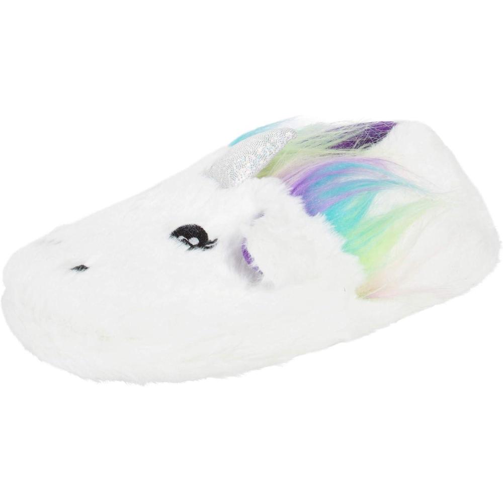 Jessica Simpson Girl’s Cute and Cozy Plush Slip on House Slippers with Memory Foam(White Unicorn)