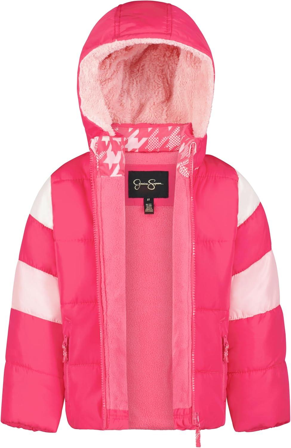Jessica Simpson girls Two-piece Insulated Winter Snowsuit With Hooded Jacket and Ski Bib Overalls(Fuchsia Houndstooth)
