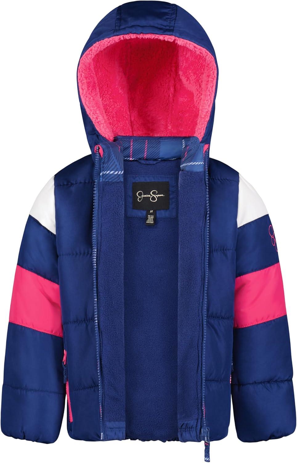 Get them ready for winter adventures with this stylish and functional Jessica Simpson snowsuit set. The set includes a cozy puffer jacket featuring a soft faux fur-trimmed hood and matching snow bib overalls. Both pieces are designed with water-resistant fabric to help keep her dry during snowy or rainy days. The puffer jacket has a warm fleece lining and a full-zip front for easy layering, while the snow bib overalls feature adjustable straps and a zip-up front for a snug fit. Perfect for outdoor play, skiing, or snowboarding, this set offers both warmth and protection from the elements.