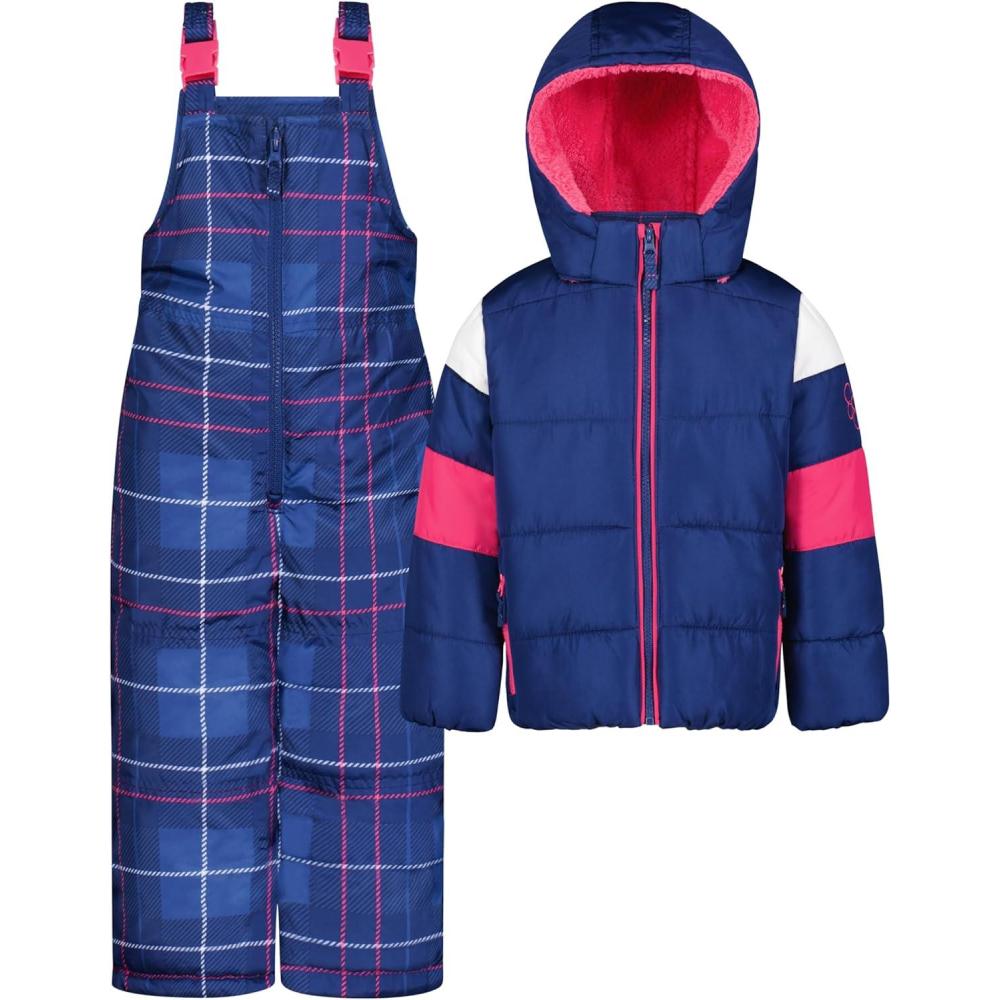 Jessica Simpson girls Two-piece Insulated Winter Snowsuit With Hooded Jacket and Ski Bib Overalls(Navy Plaid)