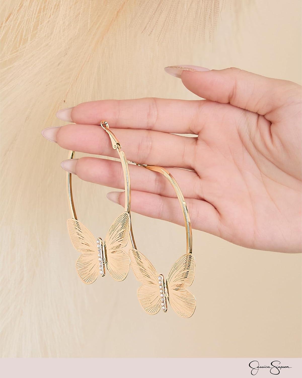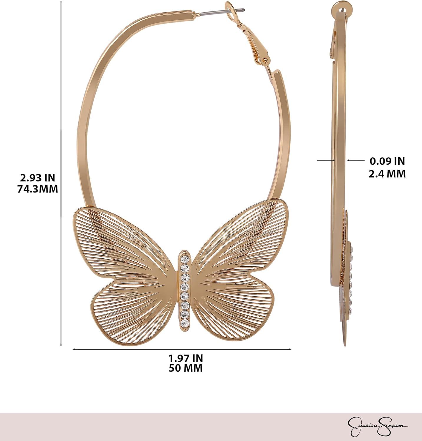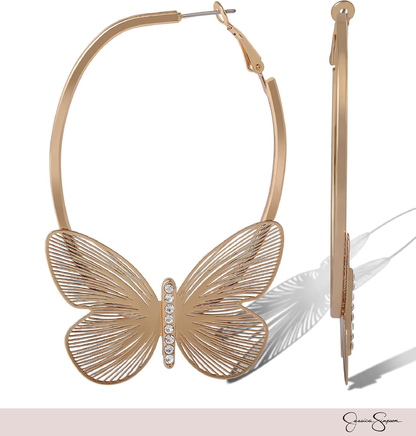 Make a sweet and stylish statement with Jessica Simpson Jewelry, featuring gold butterfly earrings in a variety of designs, including hoops, dangle, and drop earring styles. Perfect for special occasions like prom and homecoming—or simply to elevate your everyday look—these large butterfly earrings are crafted with gold-tone plating and adorned with clear crystal accents for an eye-catching sparkle.