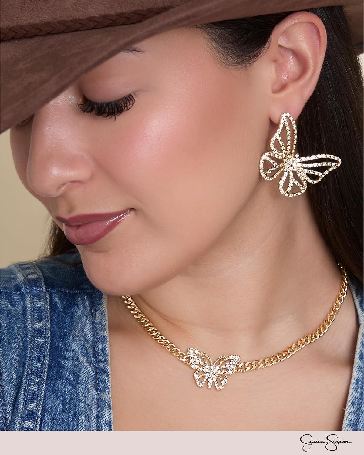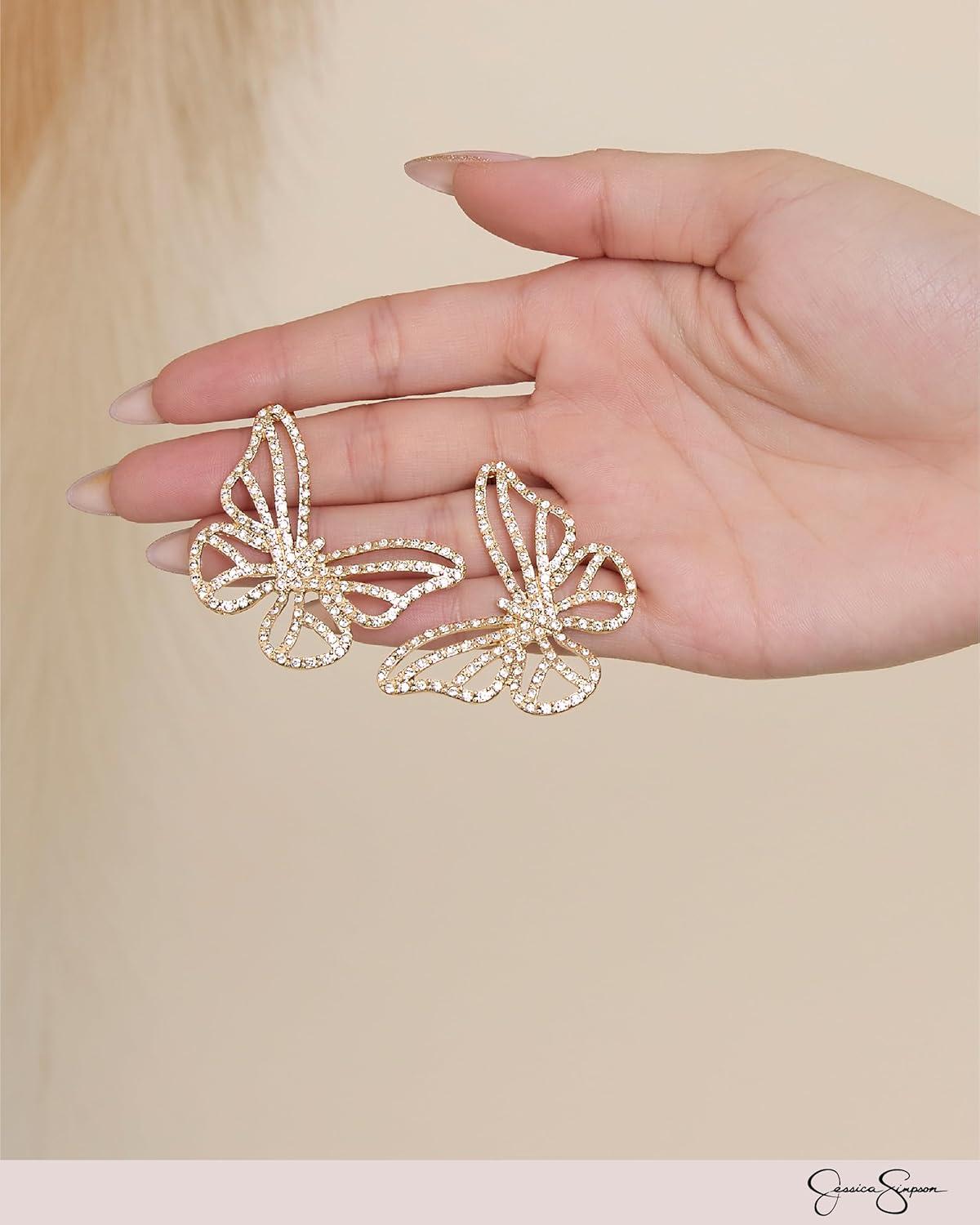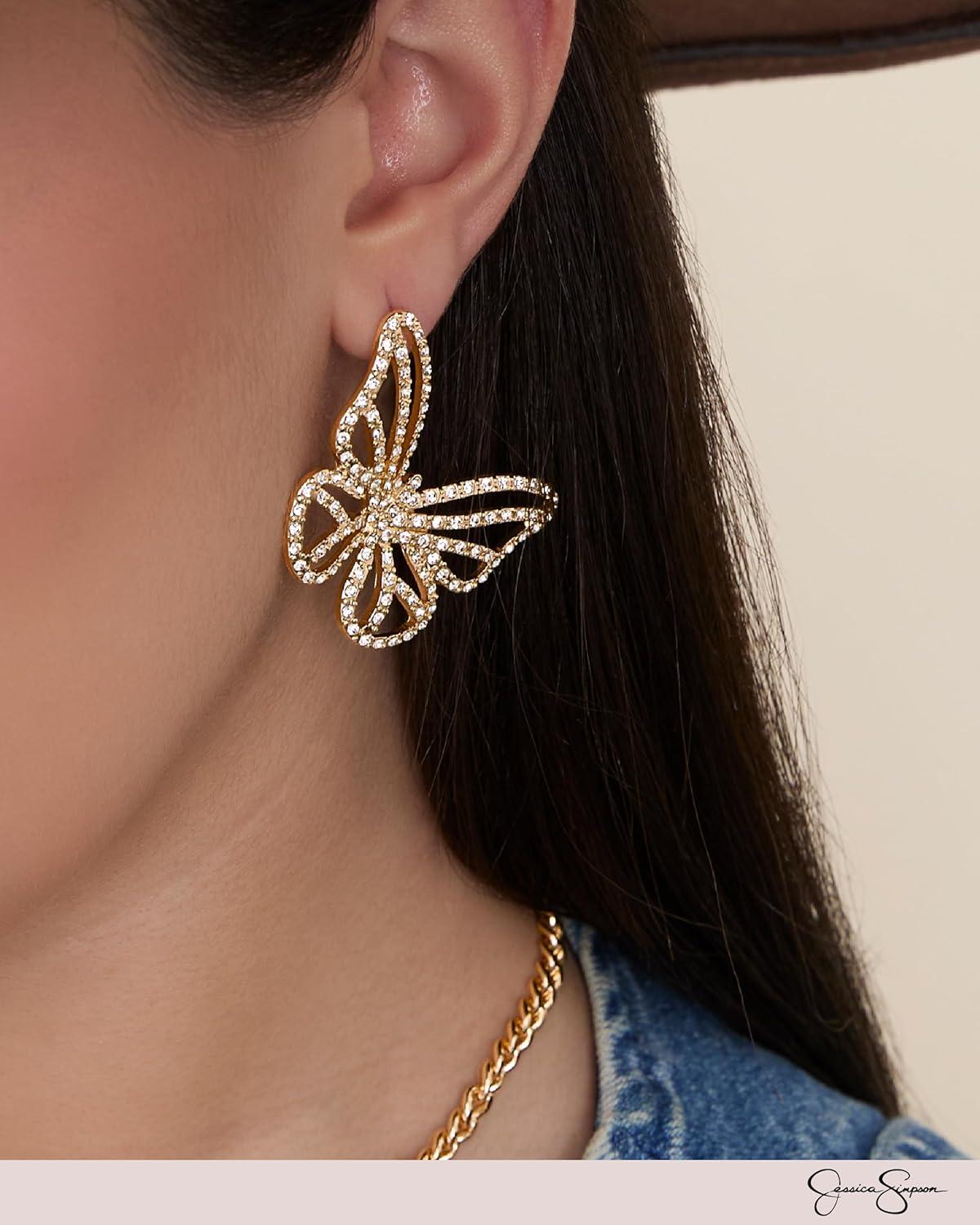 Jessica Simpson Gold-Tone Butterfly Earrings for Women, Drop or Hoop Earrings with Butterflies and Clear Crystals(Gold Pave Butterfly)