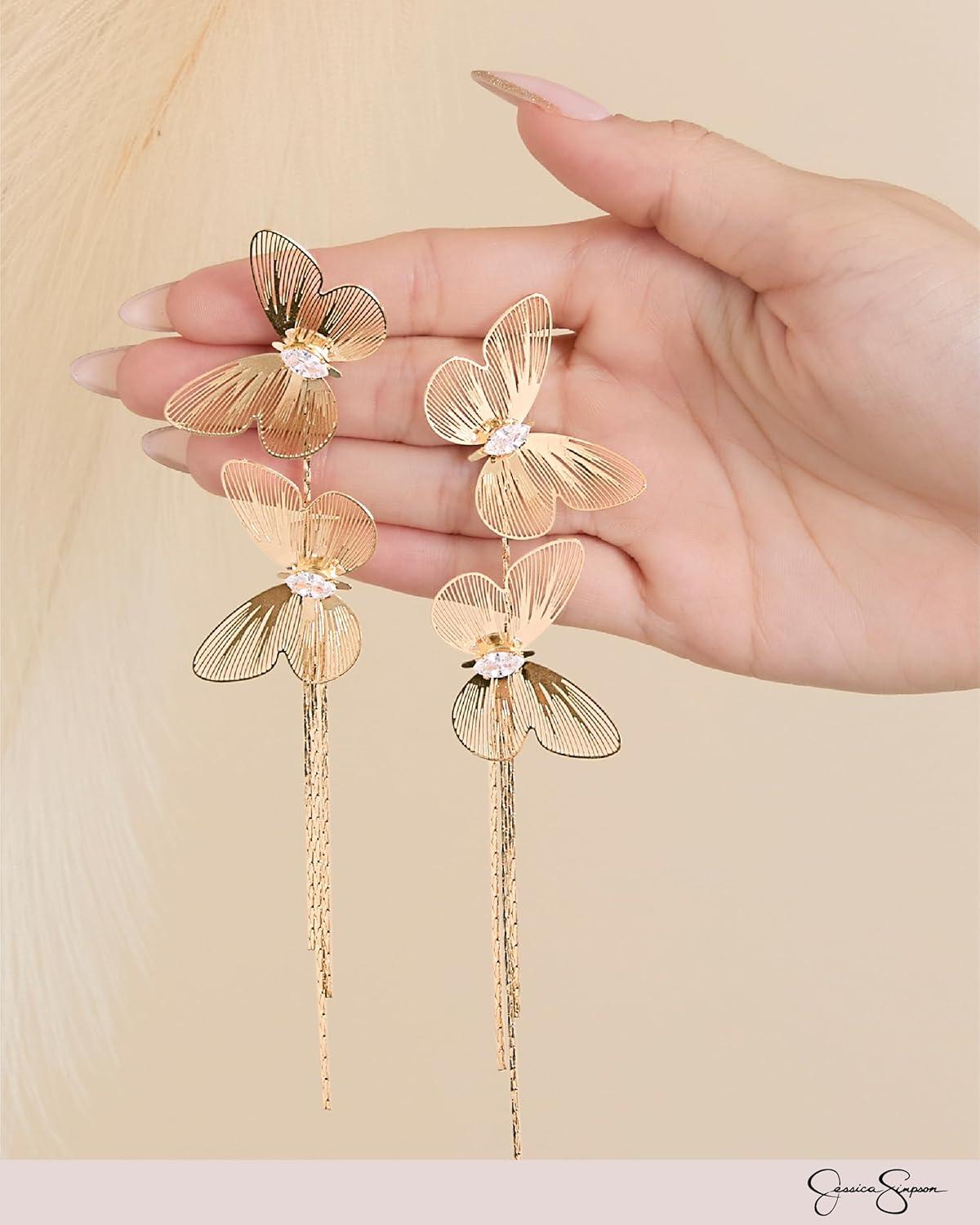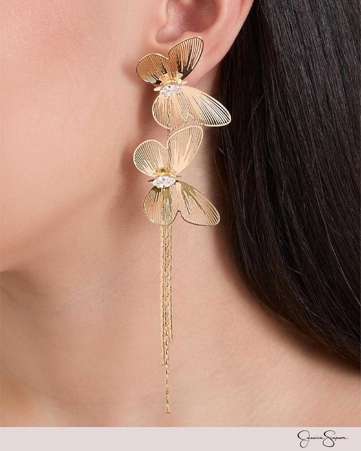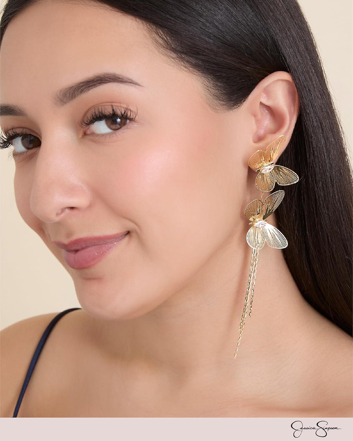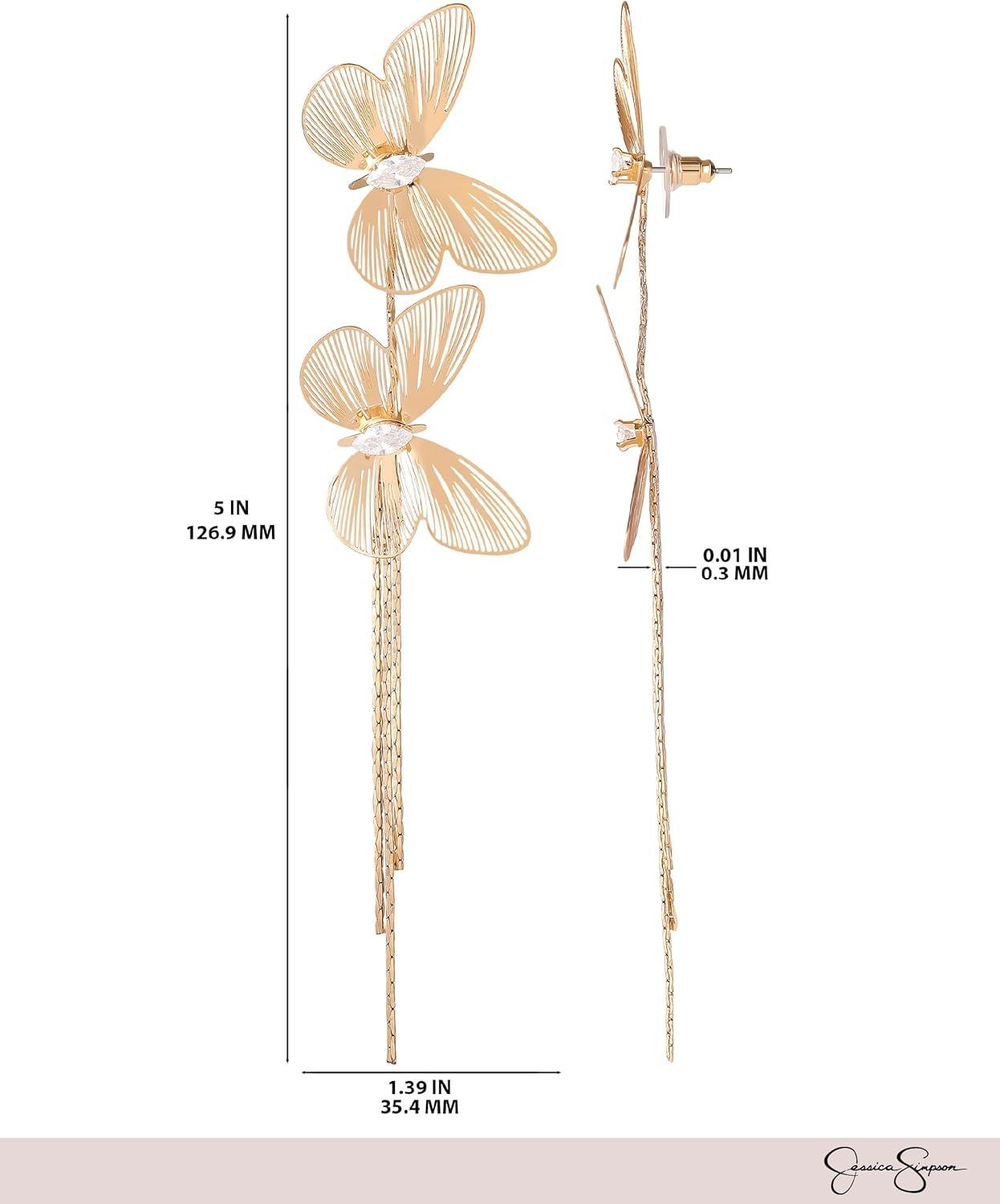 Make a sweet and stylish statement with Jessica Simpson Jewelry, featuring gold butterfly earrings in a variety of designs, including hoops, dangle, and drop earring styles. Perfect for special occasions like prom and homecoming—or simply to elevate your everyday look—these large butterfly earrings are crafted with gold-tone plating and adorned with clear crystal accents for an eye-catching sparkle.