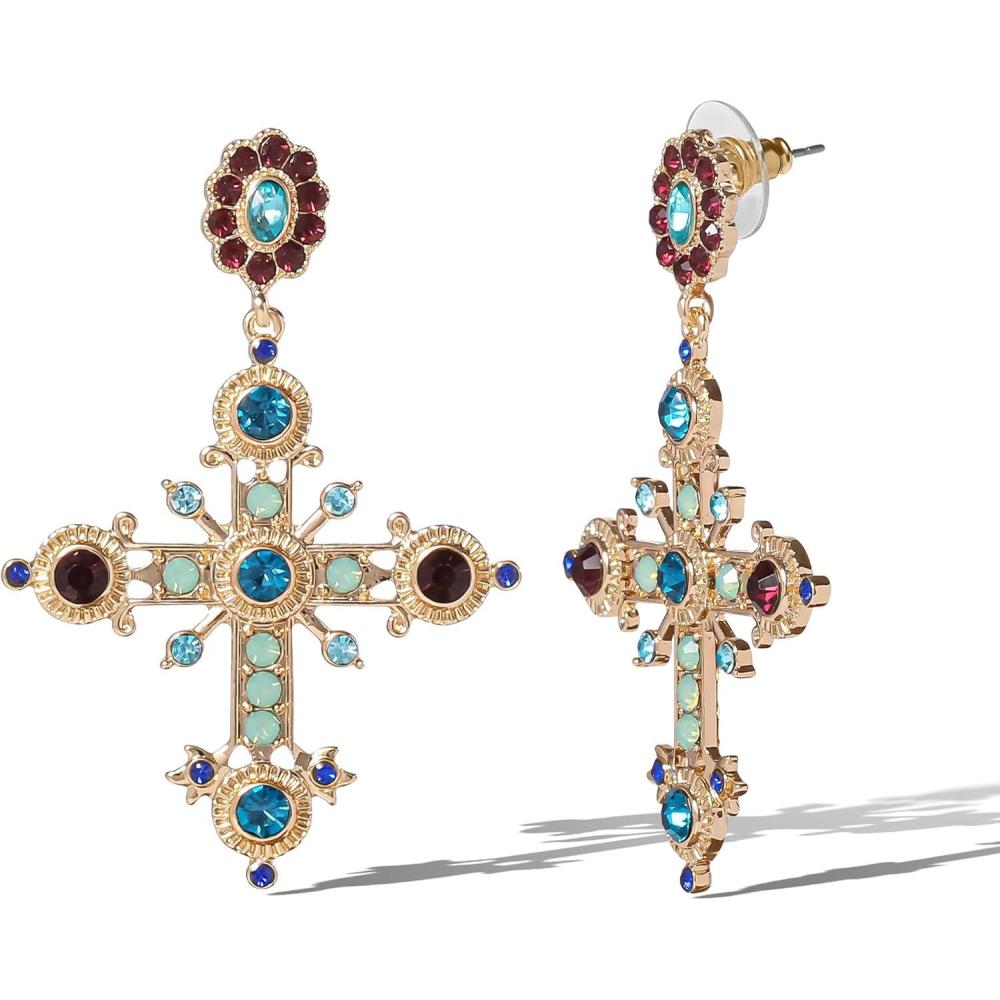 Be the first to review “Jessica Simpson Large Pave Cross Earrings for Women Multicolored Glass Stone, Gold-Tone Cross Dangle Earrings”