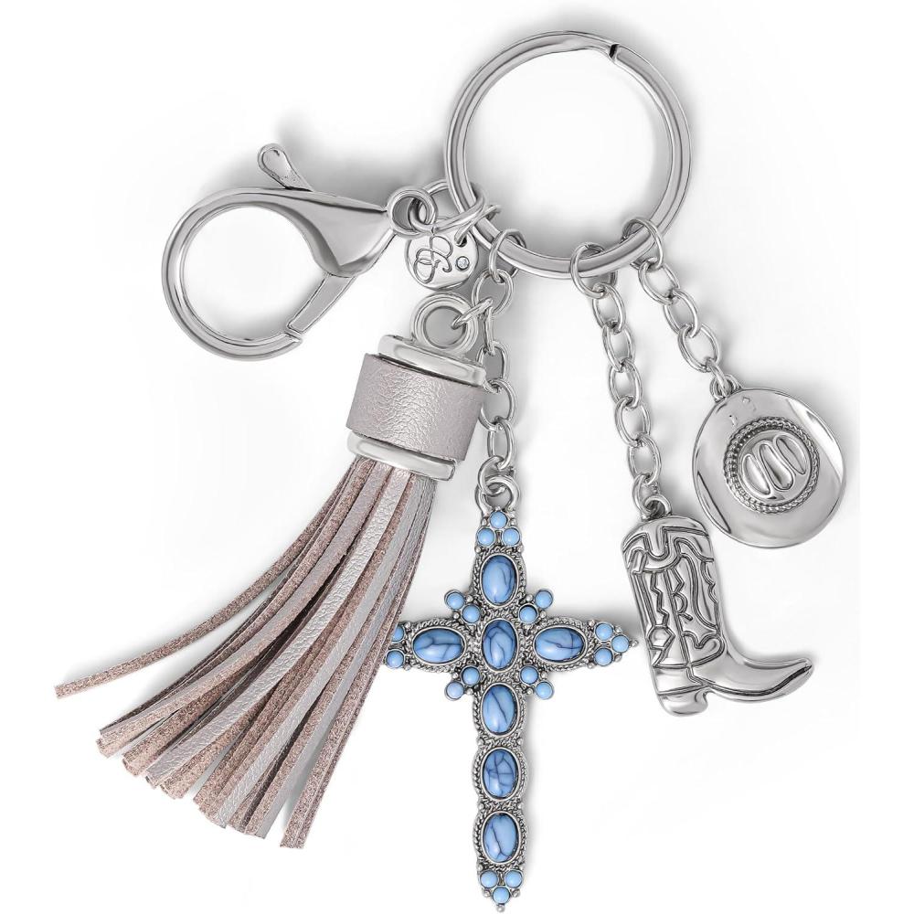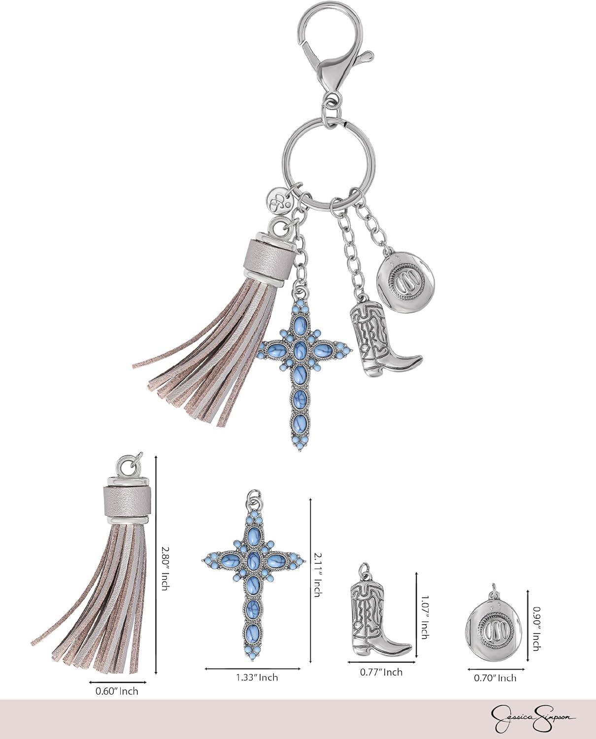 Jessica Simpson Pave Crystal Keychain for Women, Cute Purse Charms and Bag Charms for Handbag, Tote Bag, Backpack(Silver Cross)
