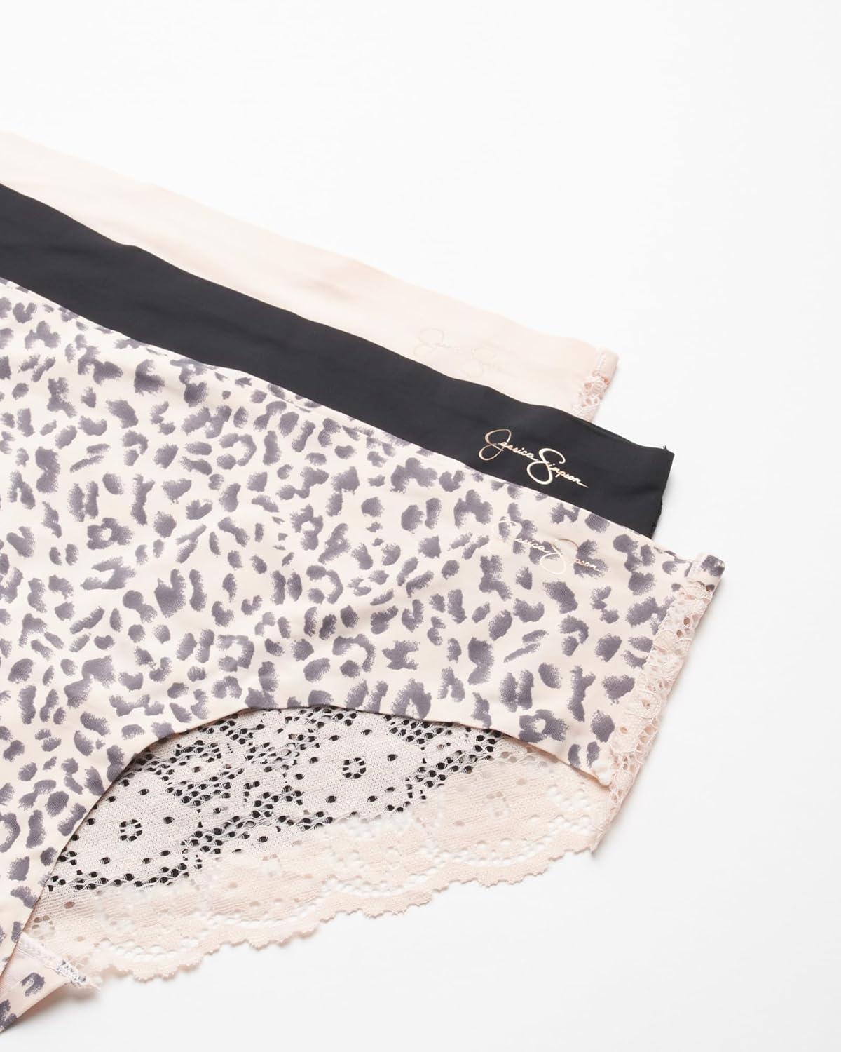 Jessica Simpson Seamless Underwear For Women, Lace Hipster Panties, Cute Breathable and Comfortable Multipack, Ropa Interior(Pearl/Black/Blush (3 Pack))