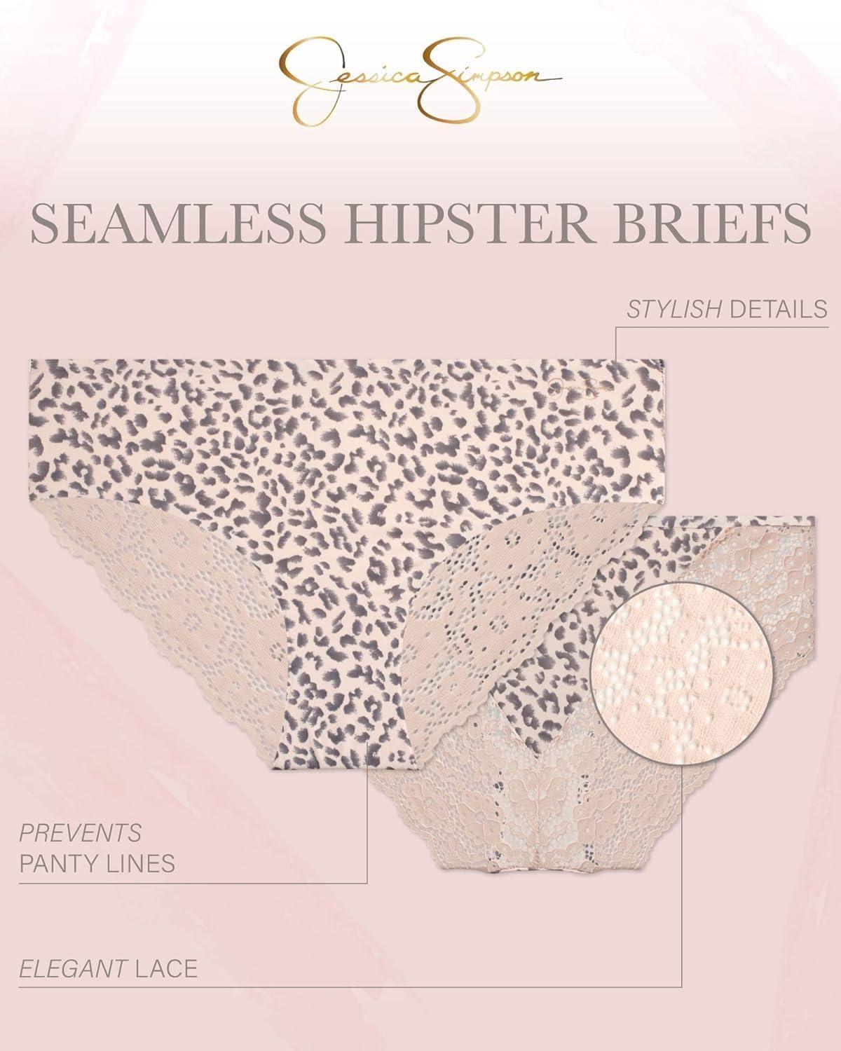 Jessica Simpson Seamless Underwear For Women, Lace Hipster Panties, Cute Breathable and Comfortable Multipack, Ropa Interior(Pearl/Black/Blush (6 Pack))