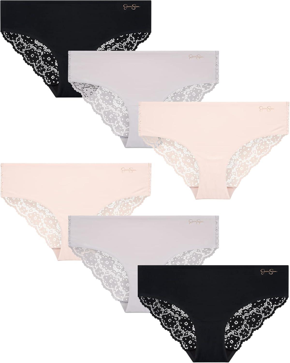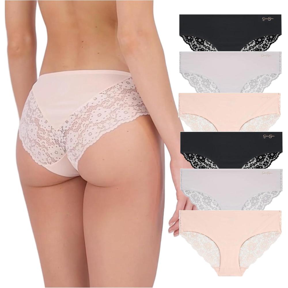 Jessica Simpson Seamless Underwear For Women, Lace Hipster Panties, Cute Breathable and Comfortable Multipack, Ropa Interior(Pearl Blush/Raindrops/Black (6 Pack))