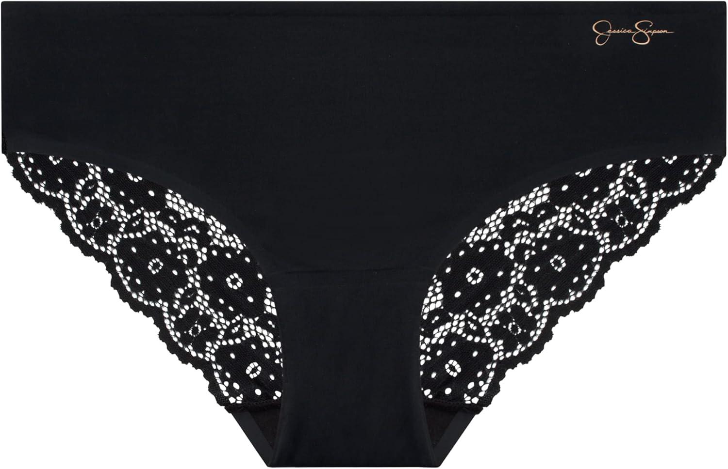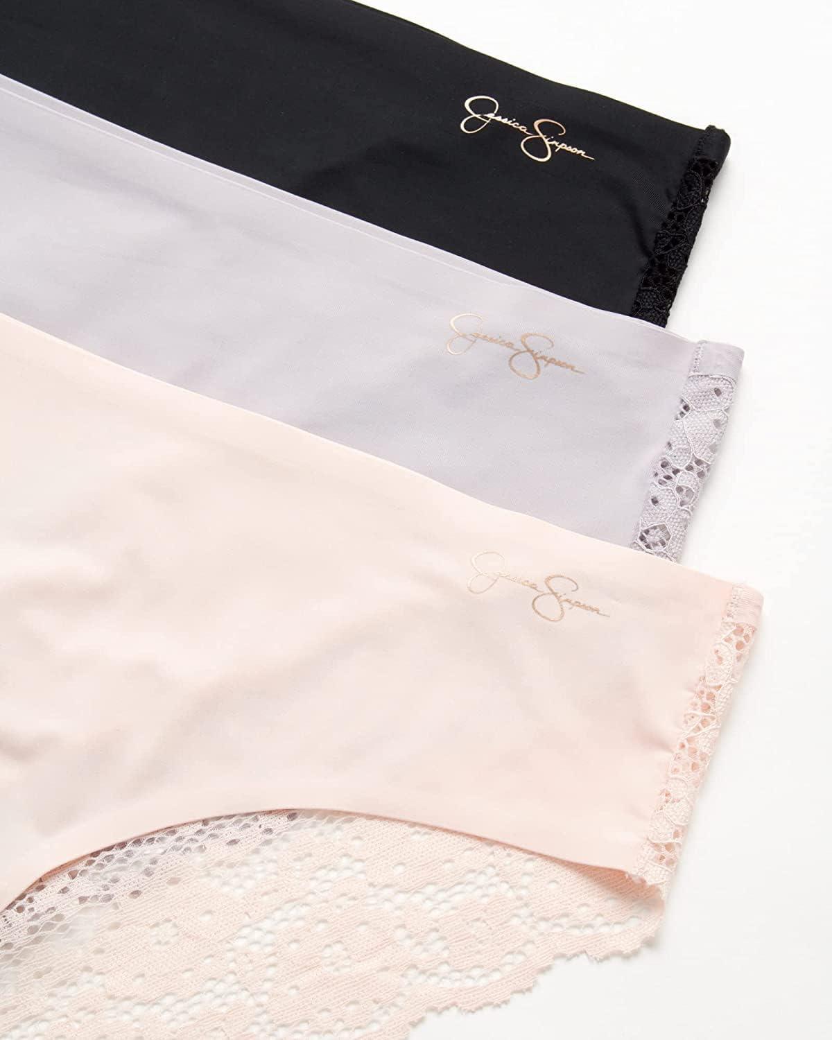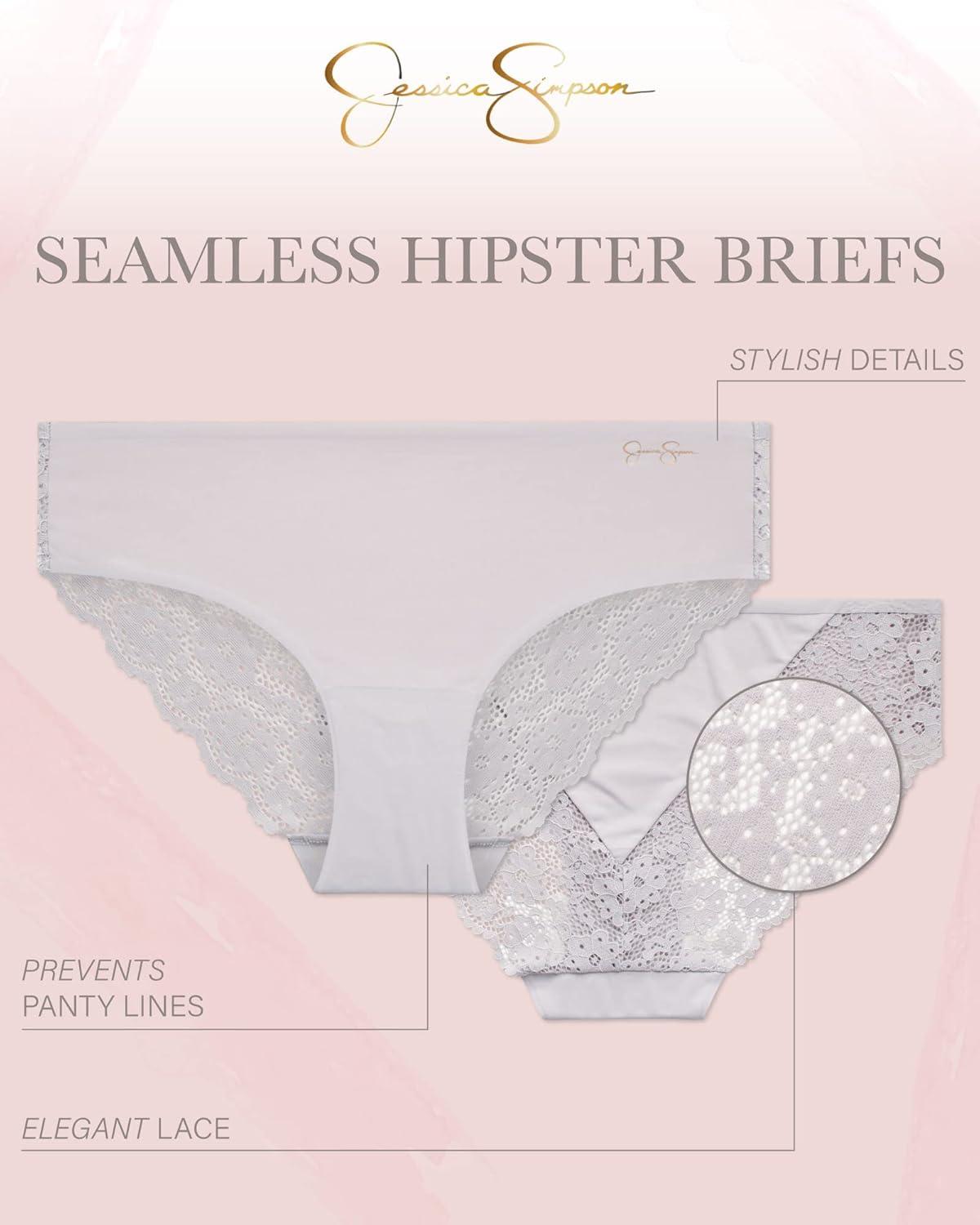 Jessica Simpson Seamless Underwear For Women, Lace Hipster Panties, Cute Breathable and Comfortable Multipack, Ropa Interior(Pearl/Black/Blush (3 Pack))