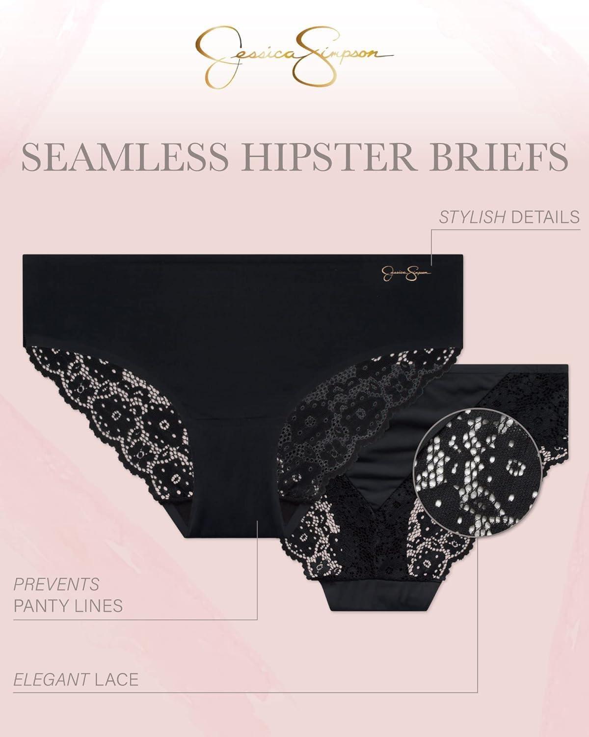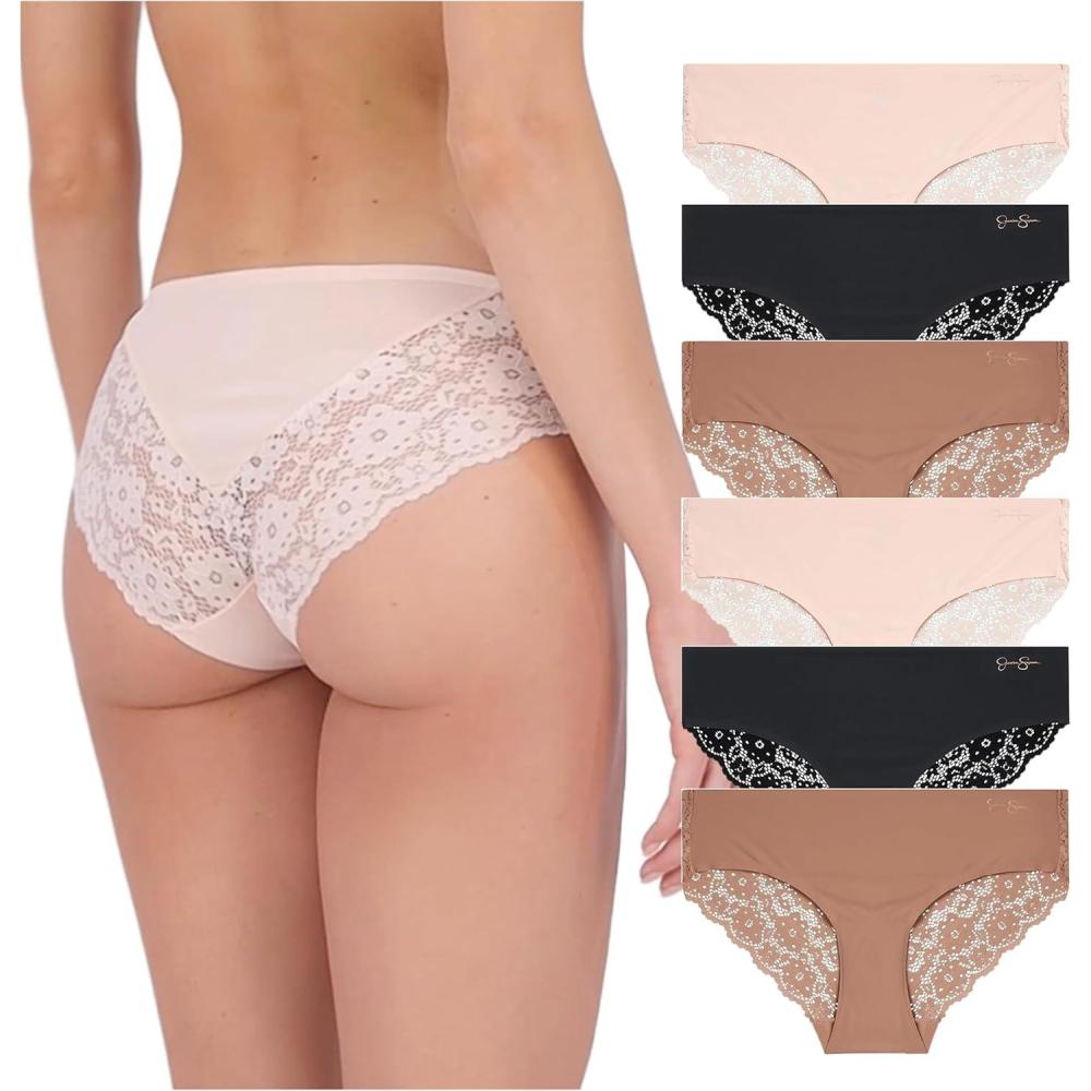 Step into signature style and all-day comfort with the Jessica Simpson Seamless Lace Hipster Panties. Inspired by Jessica's playful aesthetic, these panties combine feminine details with everyday wearability. Each pair is crafted with a smooth, stretchy fabric that hugs your curves, and the soft lace trim adds just the right touch of elegance. The seamless cut keeps you feeling confident whether you're dressing up or lounging in. With a range of chic colors in every pack, this is lingerie that looks as good as it feels. Disfruta de un estilo único y comodidad durante todo el día con las braguitas hipster de encaje sin costuras de Jessica Simpson. Inspiradas en la estética divertida de Jessica, estas braguitas combinan detalles femeninos con un uso diario. Cada par está confeccionado con un tejido suave y elástico que se adapta a tus curvas, y el suave ribete de encaje le da el toque perfecto de elegancia. Su corte sin costuras te da seguridad, ya sea para salir de fiesta o para relajarte. Con una gama de colores chic en cada pack, esta lencería se ve tan bien como se siente.