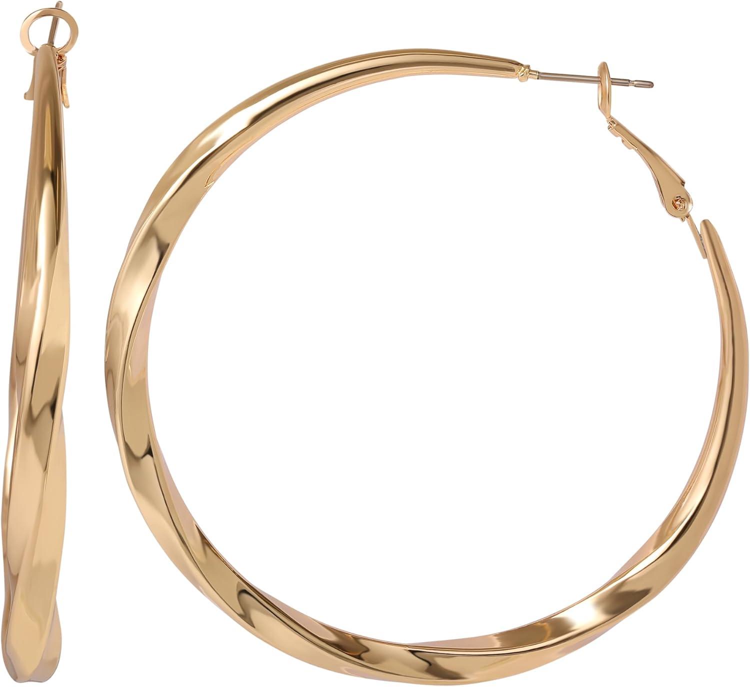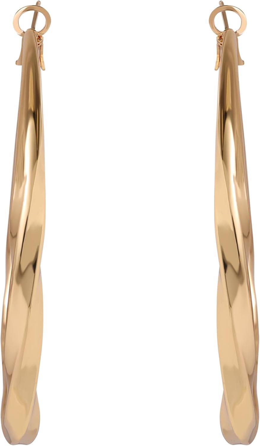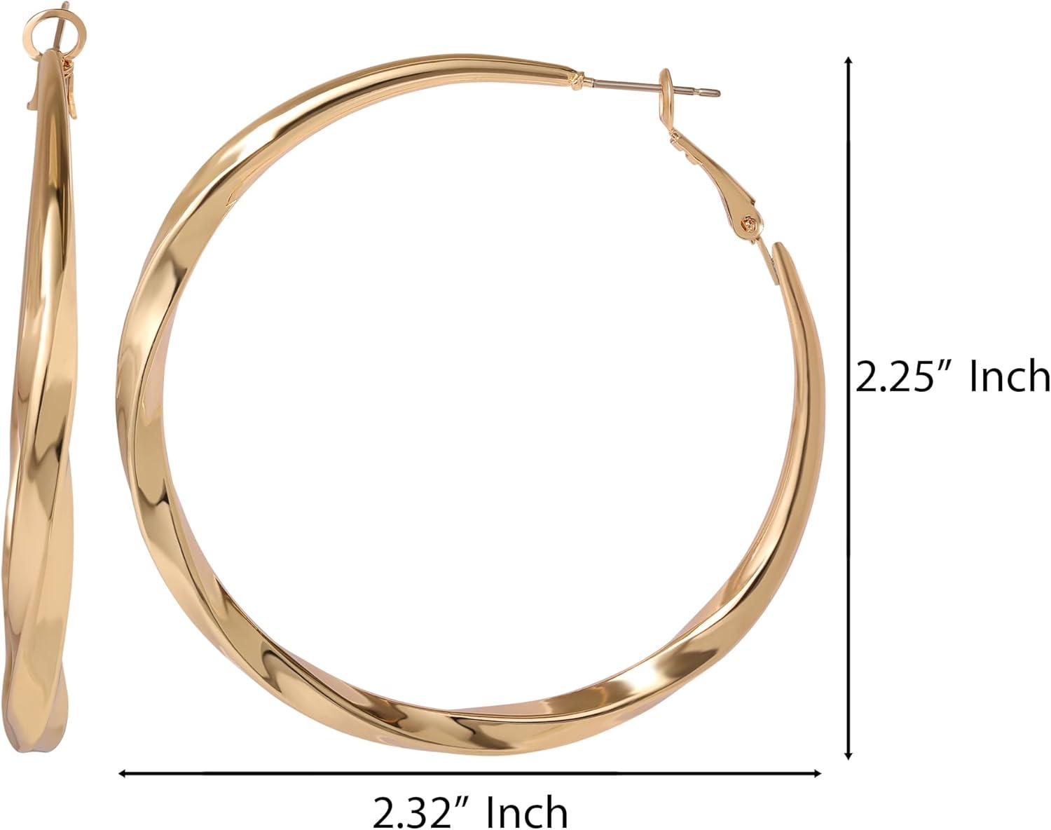 Jessica Simpson Silver of Gold-Tone Hoop Earrings for Women Trendy, Drop or Hoops Earrings Silver or Gold Tone-Plated(Yellow Twisted Hoop)