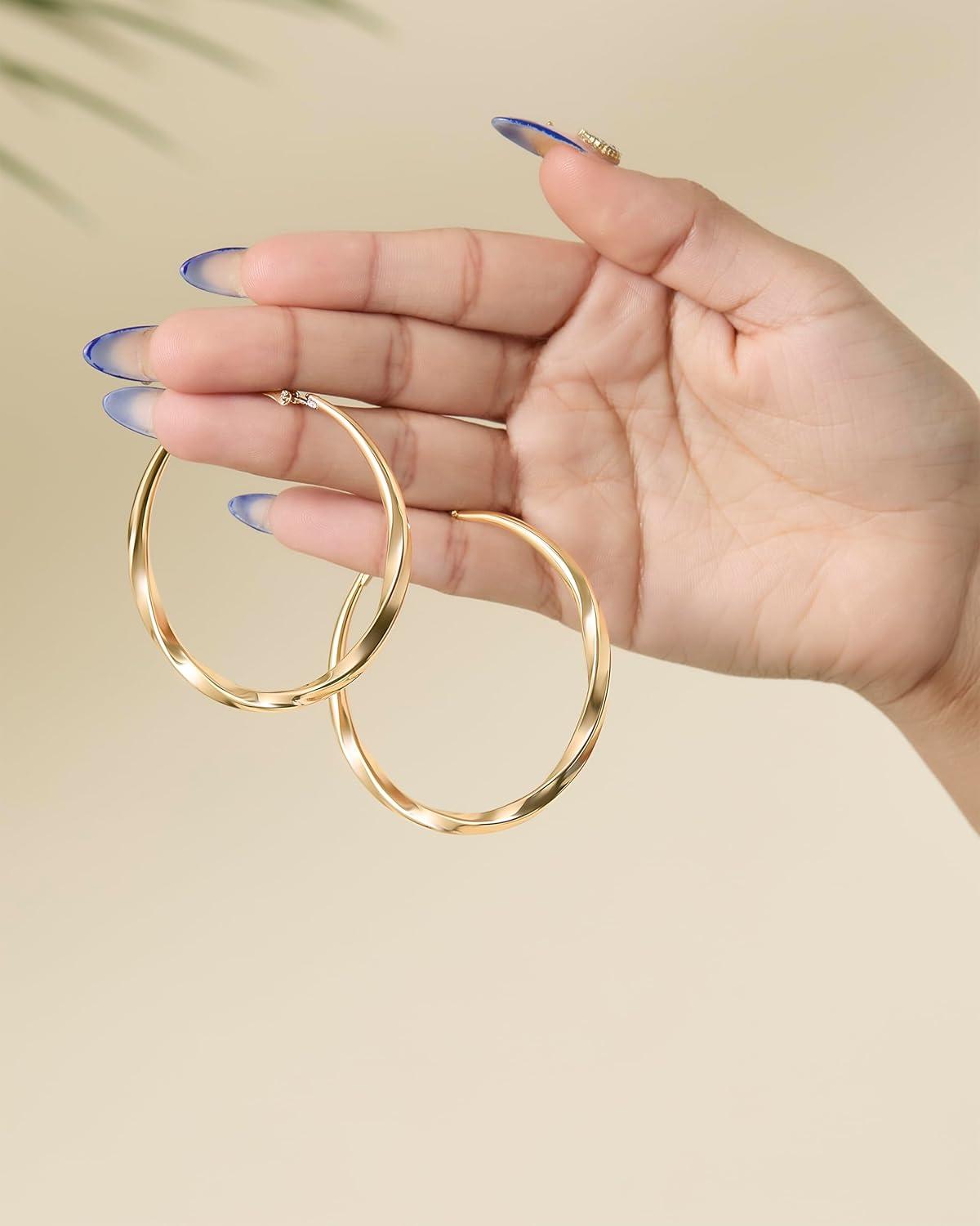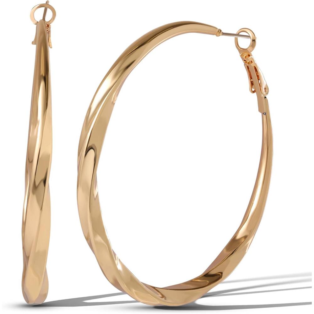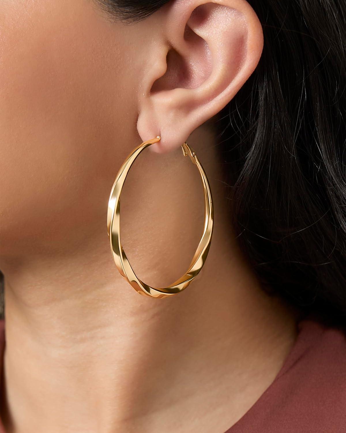 Jessica Simpson Silver of Gold-Tone Hoop Earrings for Women Trendy, Drop or Hoops Earrings Silver or Gold Tone-Plated(Yellow Twisted Hoop)
