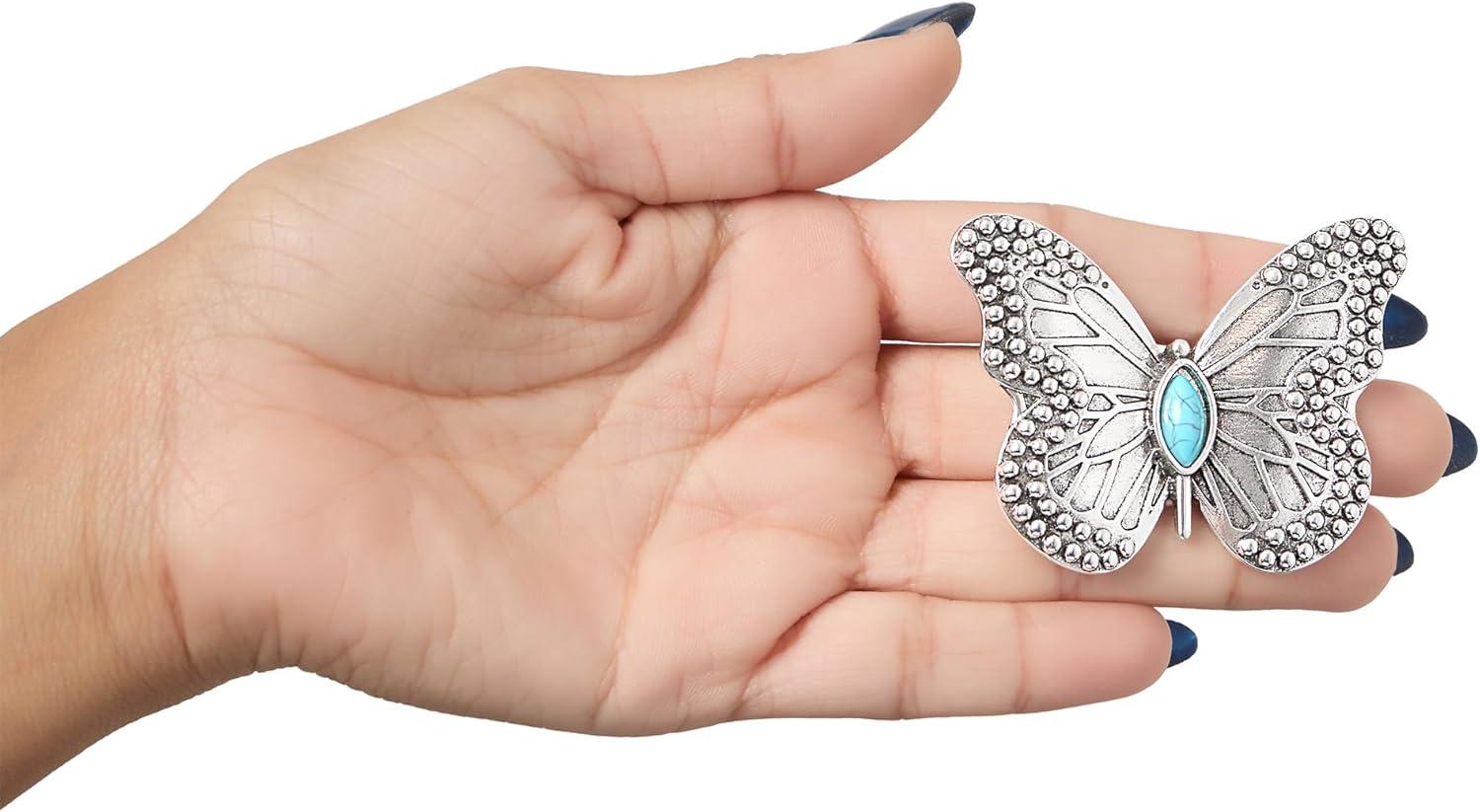 Jessica Simpson Silver or Gold-Tone Brooch for Women, Western Pins with Dangle Charms, Turquoise, or Rhinestones(Silver Turquoise Butterfly)