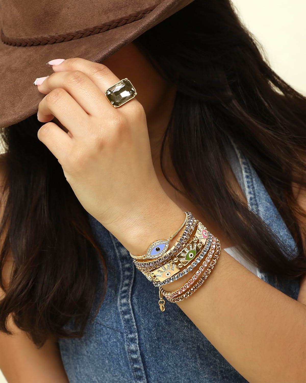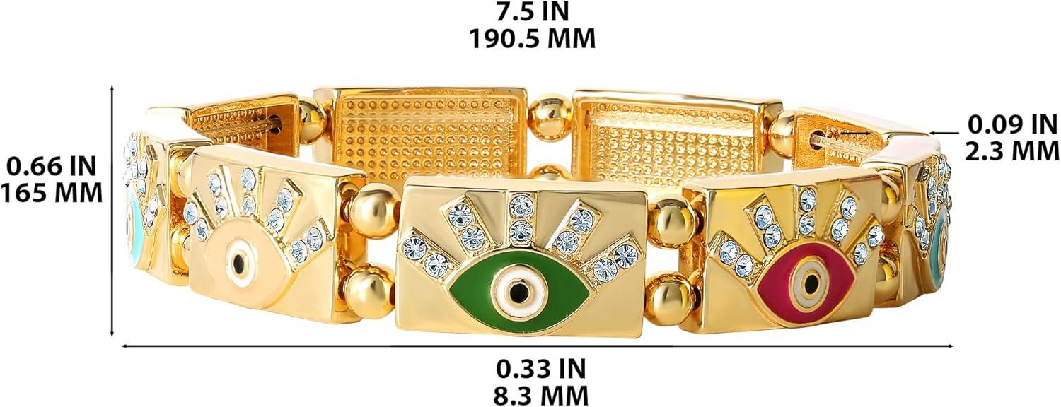 Whether you prefer a stretch-to-fit or adjustable design with an extender chain at the closure, these bracelets are tailored to your comfort. Packaged in a Jessica Simpson gift box with a pouch, these evil eye gold bracelets are the perfect gift choice for birthdays, Christmas, Mother's Day, Valentine's Day, anniversaries, or any special occasion, radiating positivity and style.