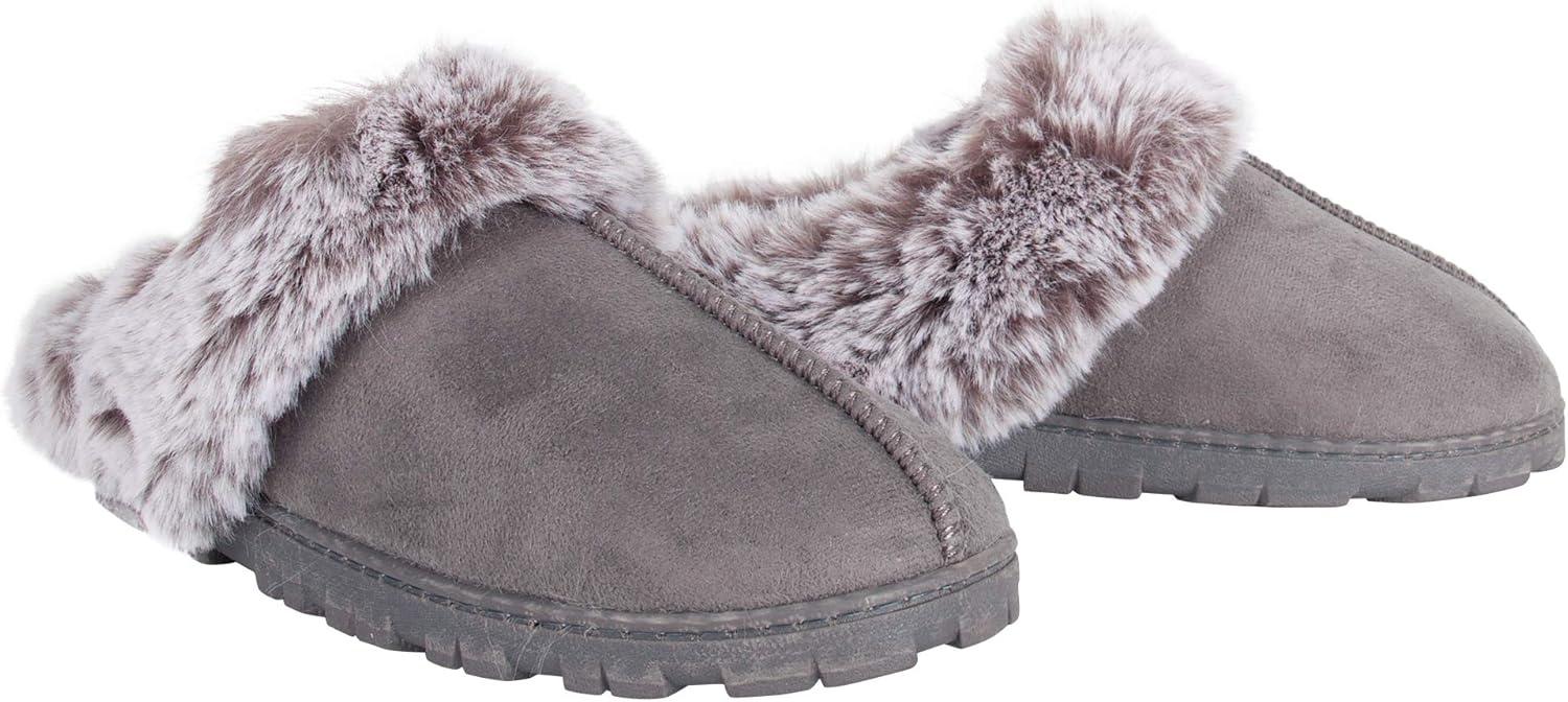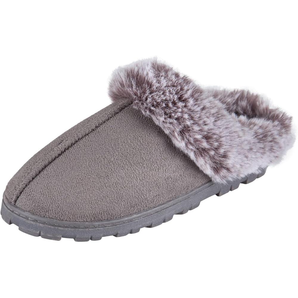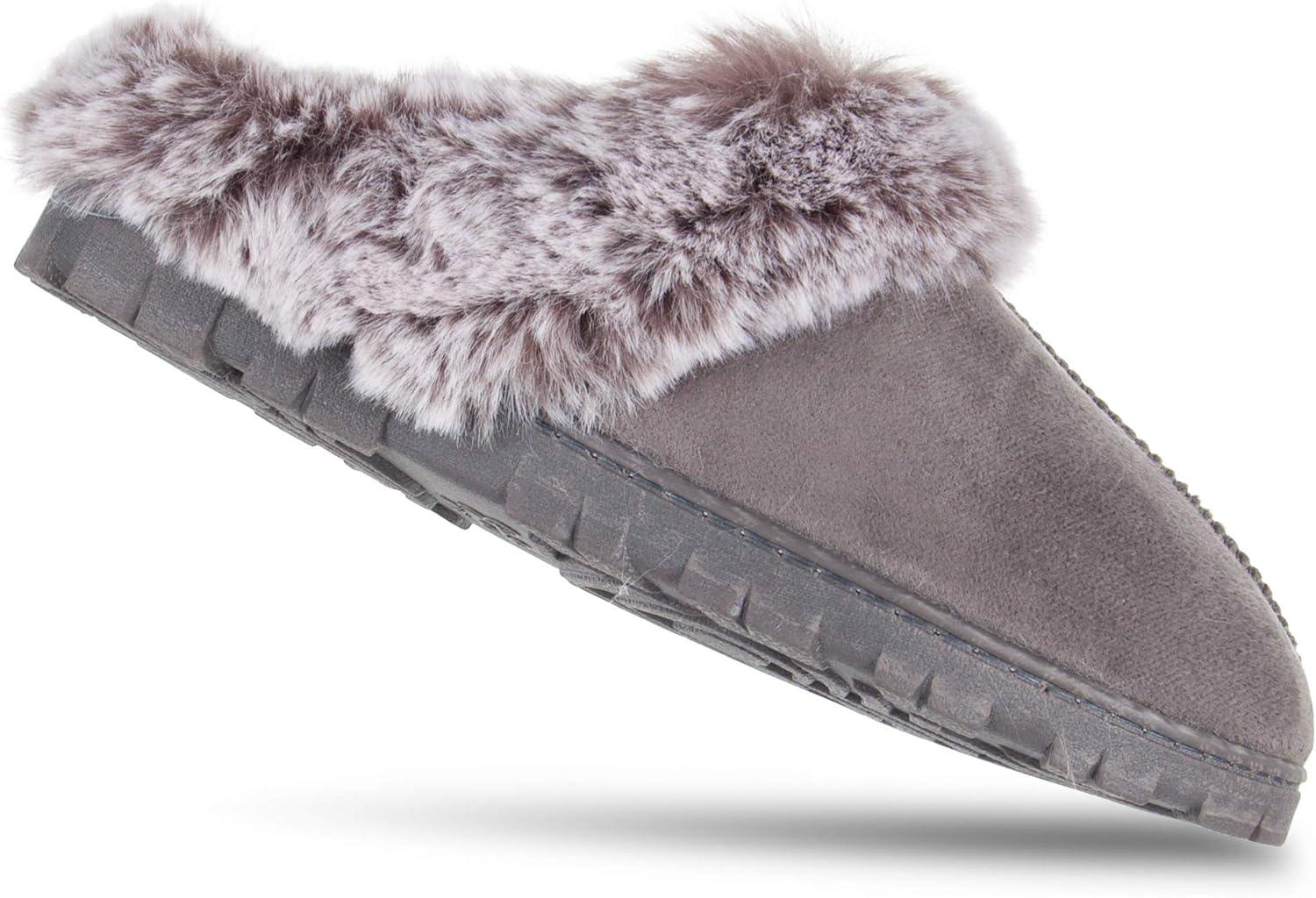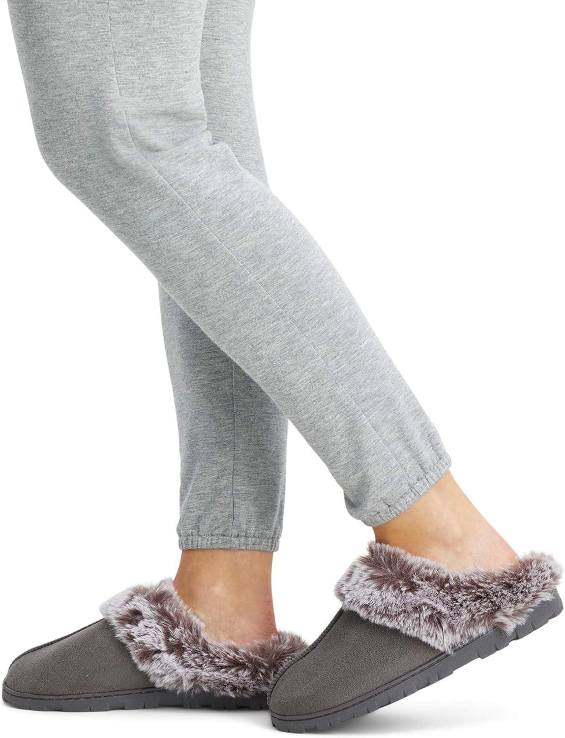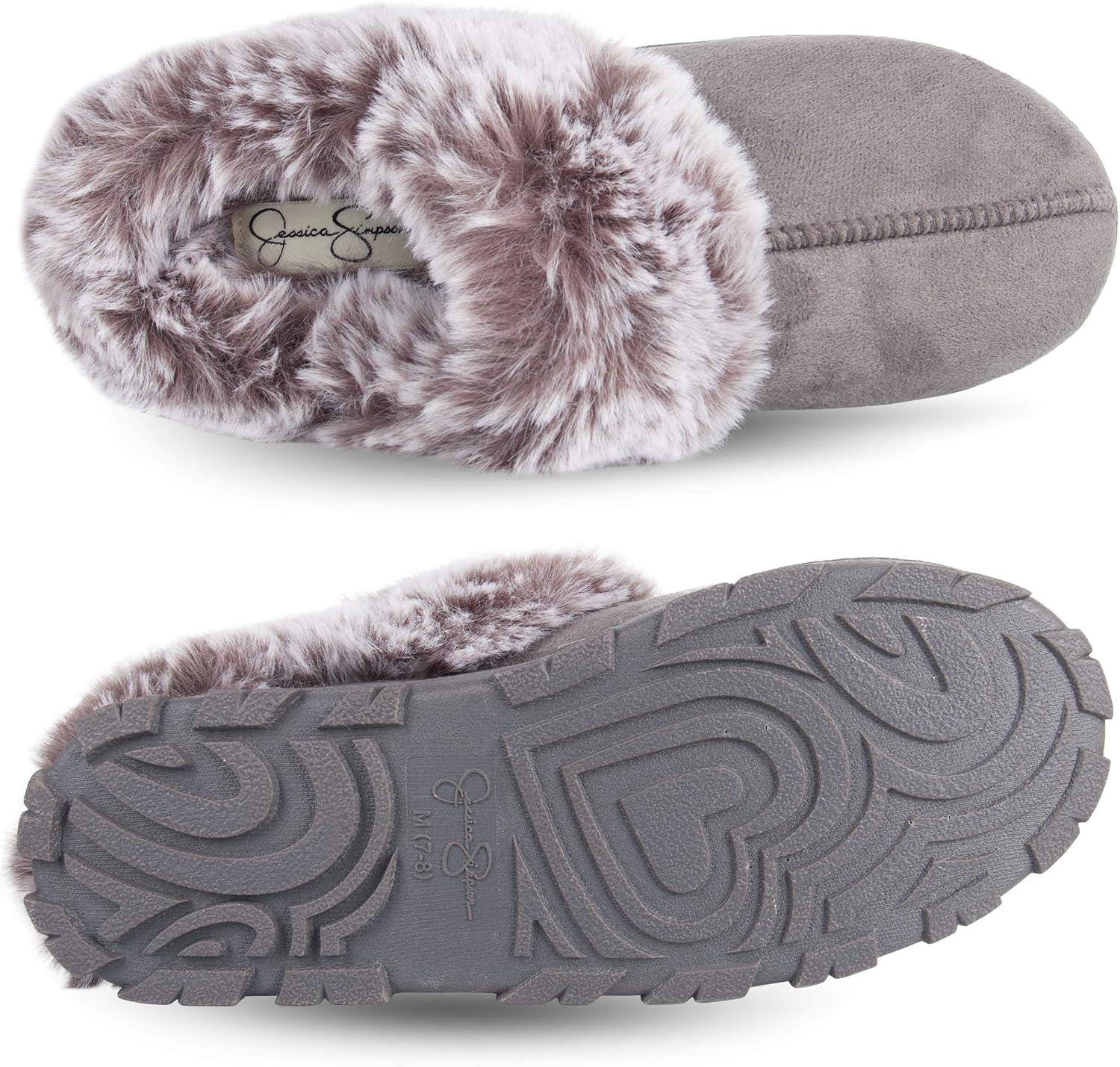 Jessica Simpson Women’s Faux Fur Clog – Comfy Furry Soft Indoor House Slippers with Memory Foam(Grey)