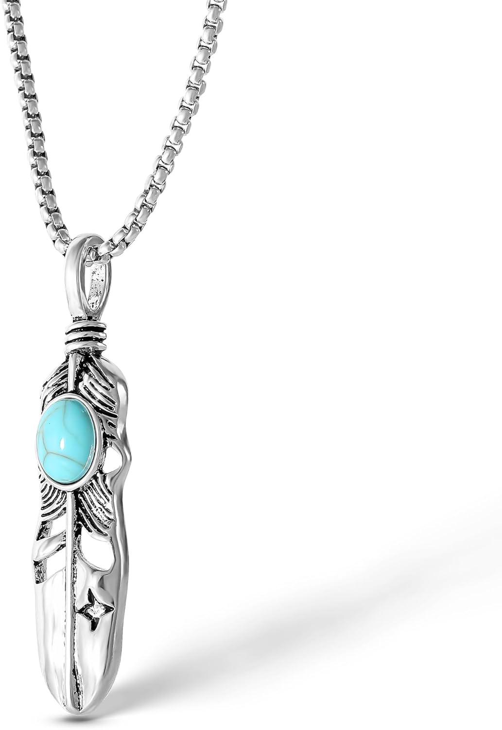 Jessica Simpson Womens Feather Necklace with Turquoise Stone – Silver or Gold-Tone Turquoise Necklace Long 23″(Silver Feather)