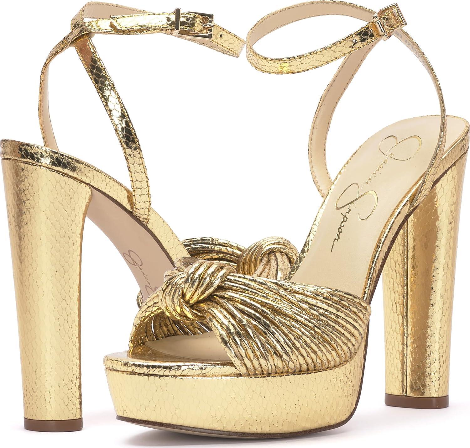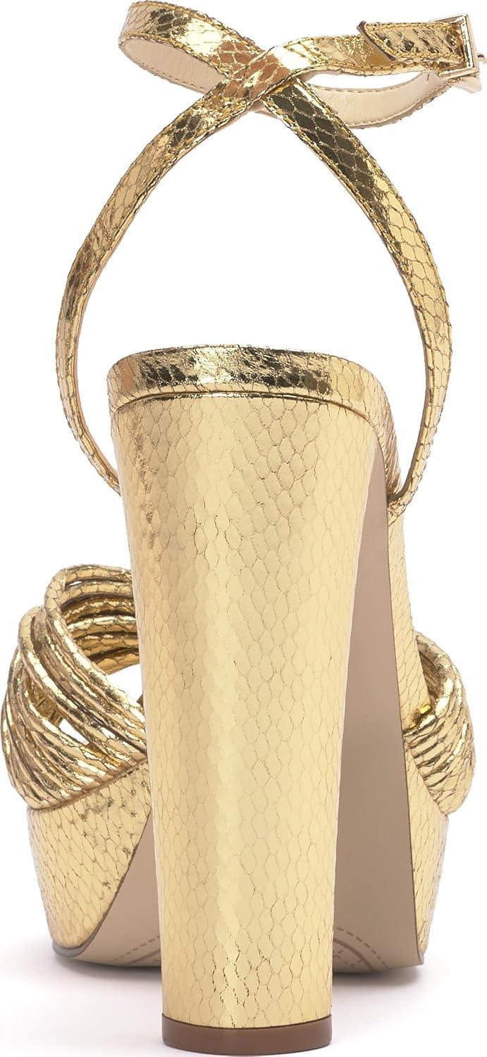 Jessica Simpson Womens Immie Platform Sandal with Ankle Strap(Gold)