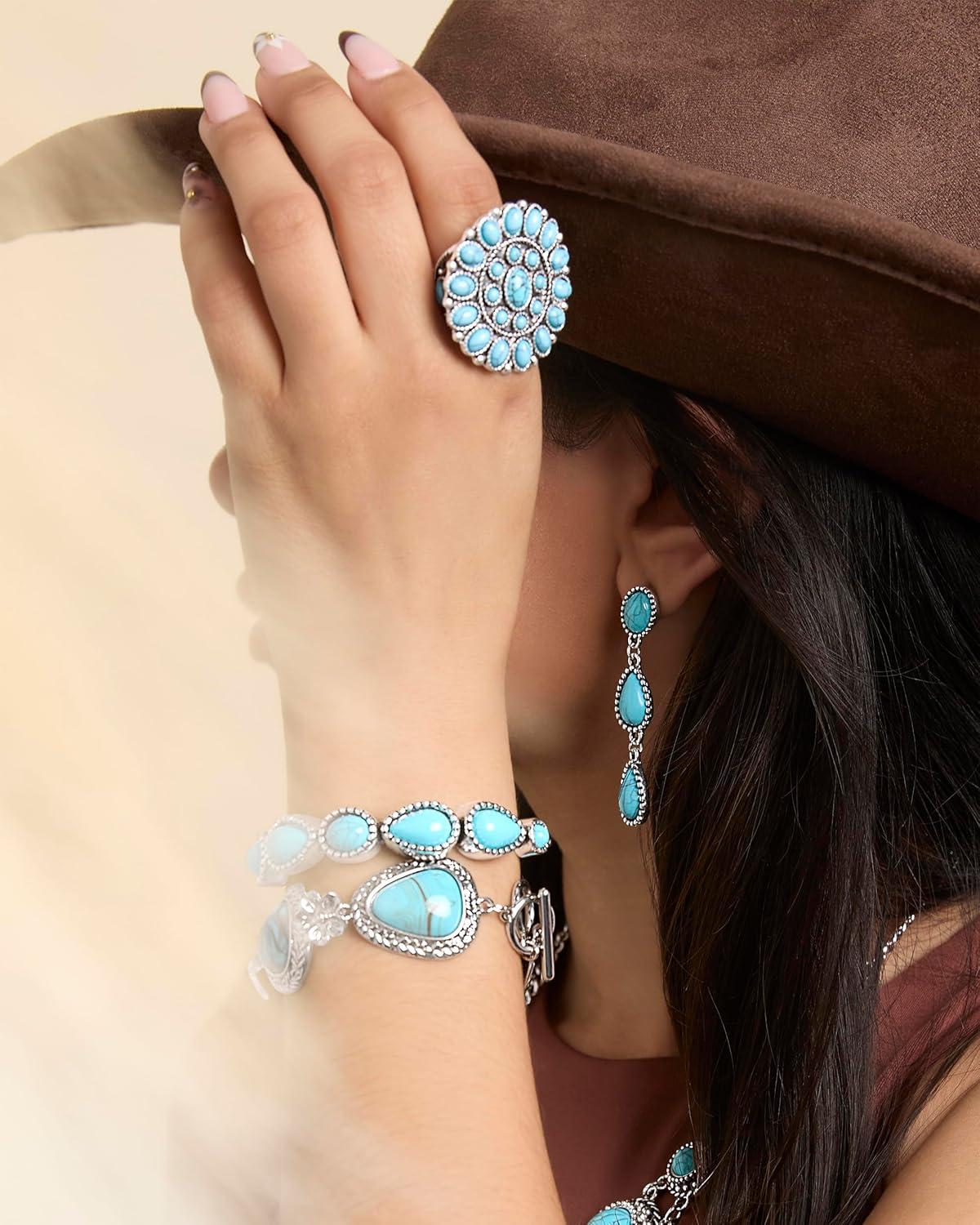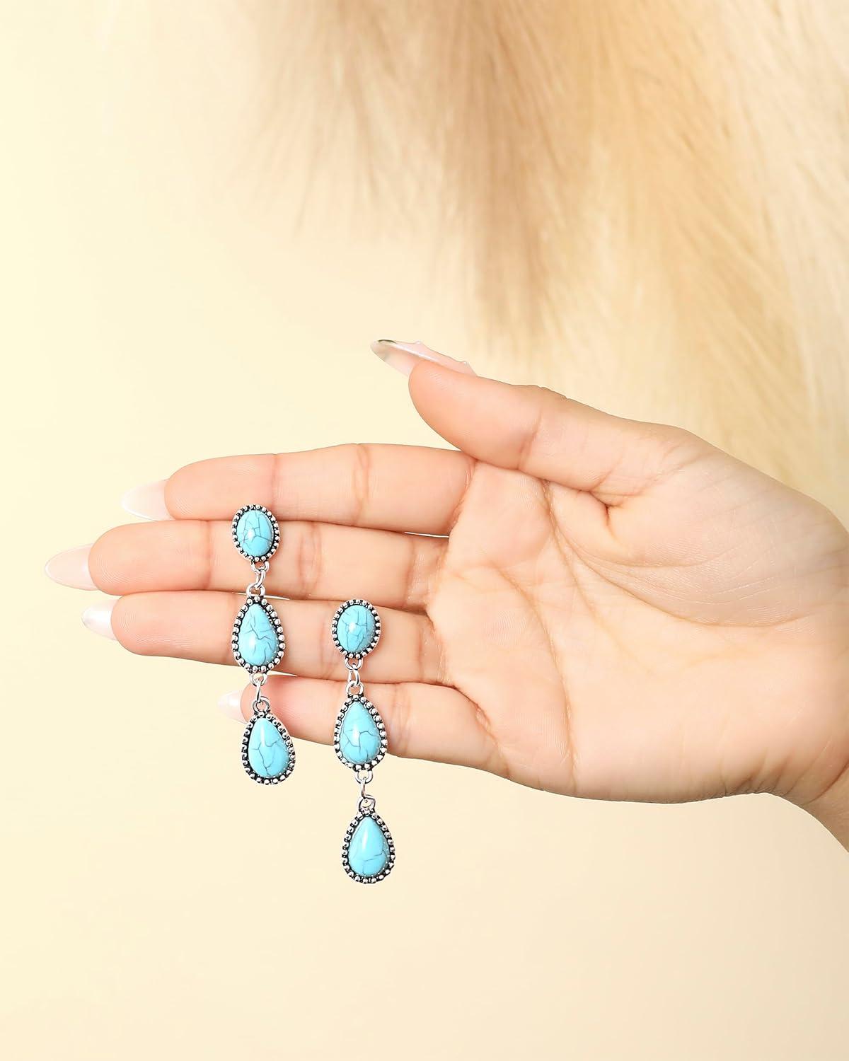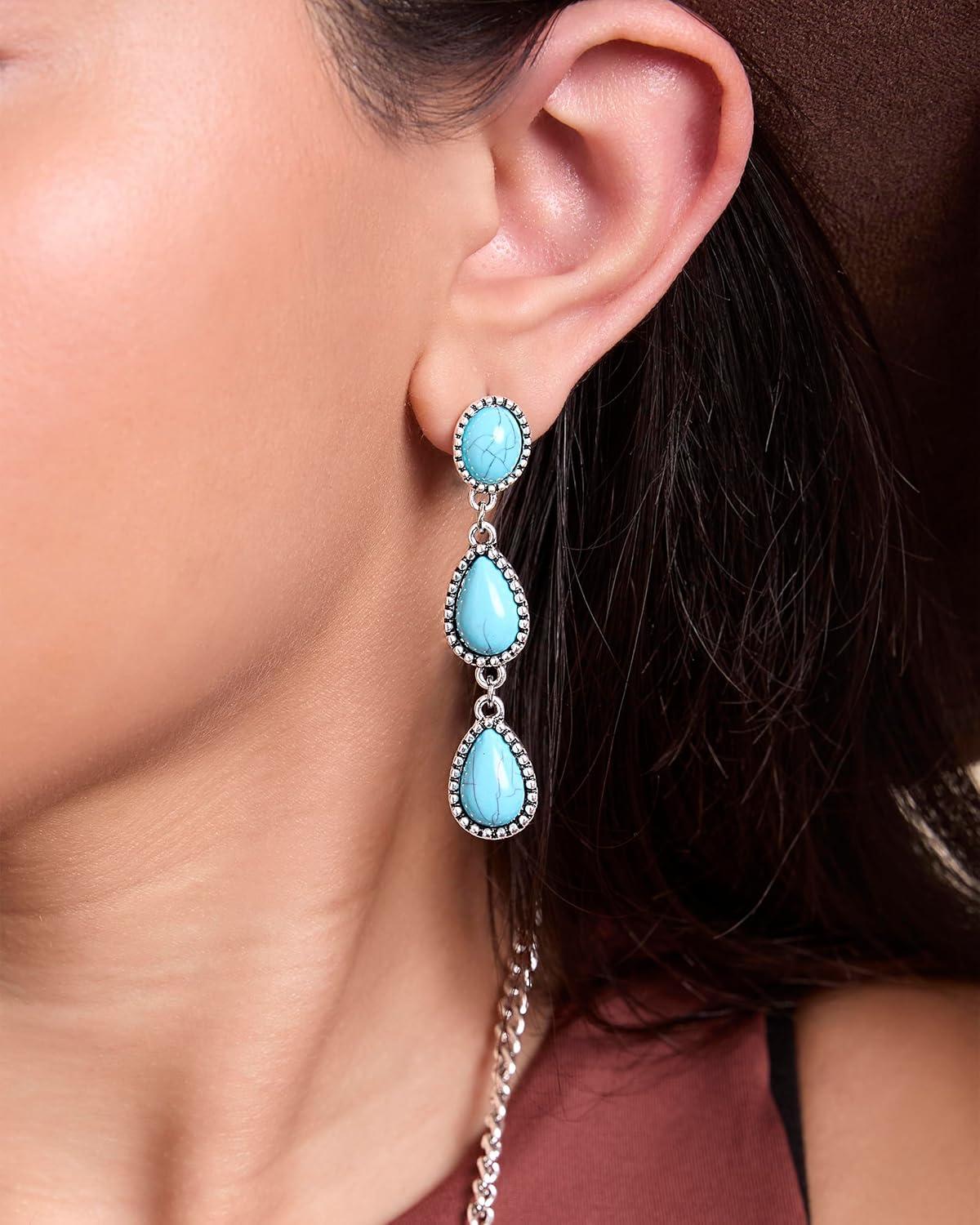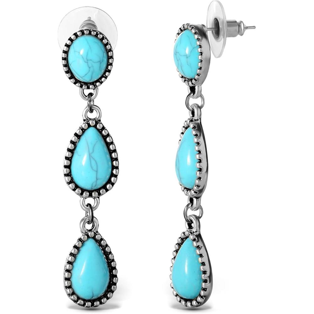 These turquoise earrings for women are available in either oxidized gold-tone or silver-tone metal, adding a touch of vintage charm to any ensemble.