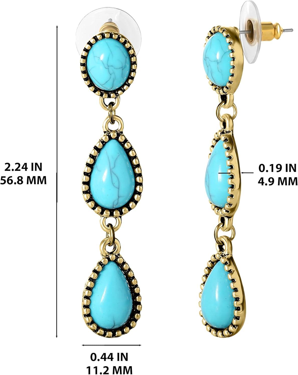 Jessica Simpson Womens Turquoise Earrings – Oxidized Gold-Tone or Silver-Tone Turquoise Dangle Earrings for Women(Turquoise 3 Stone Drop)