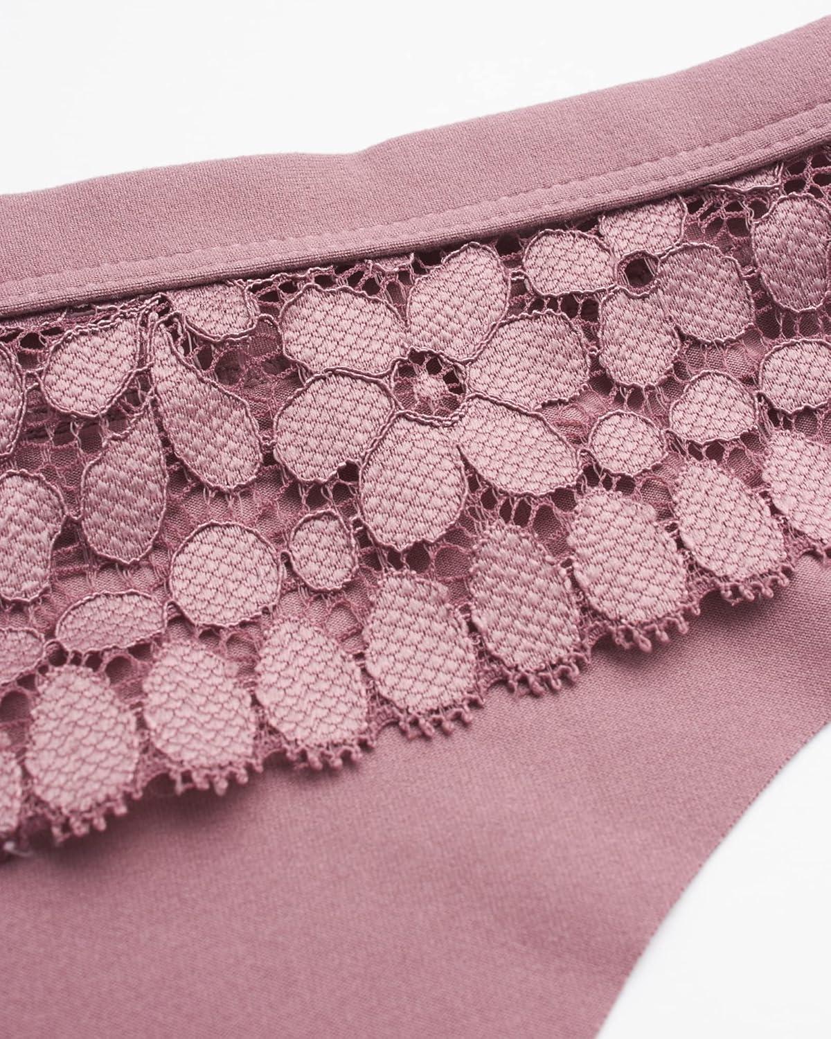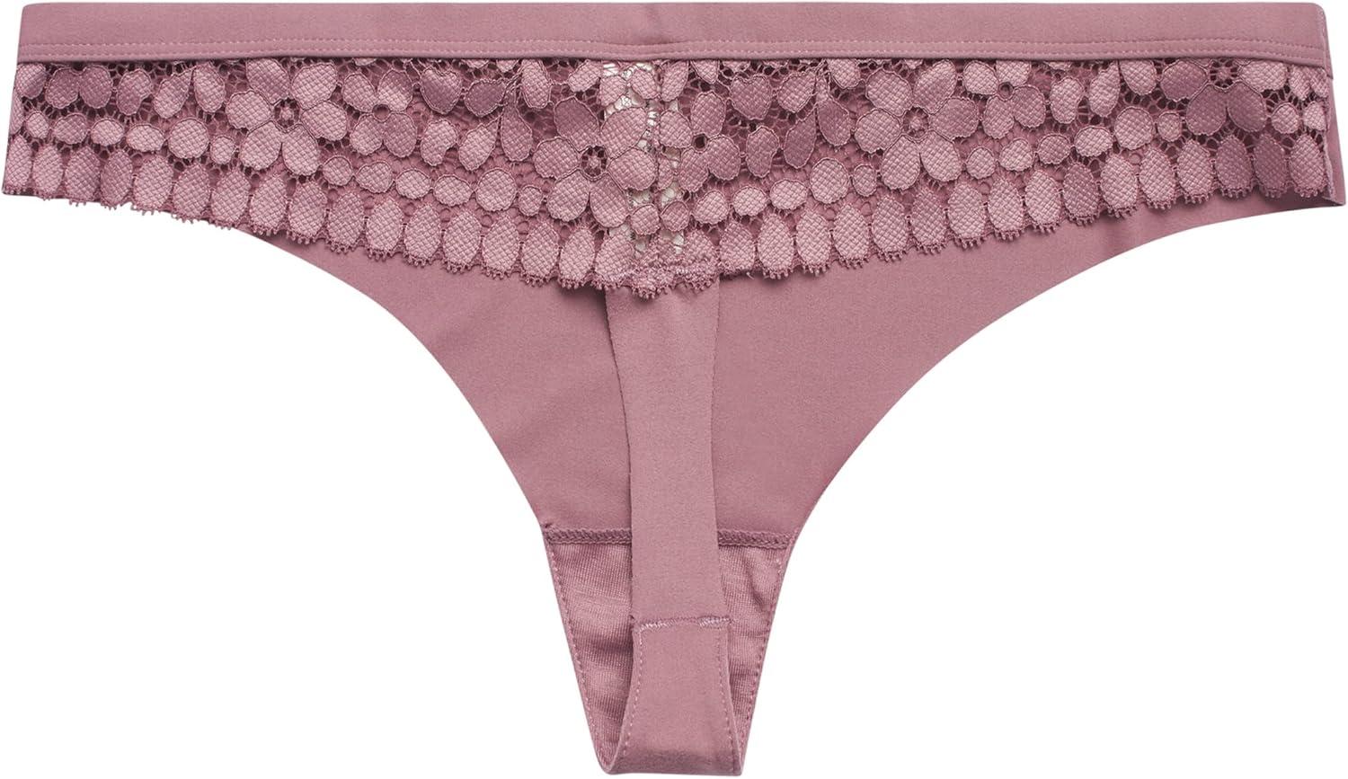 Jessica Simpson Women’s Underwear Breathable Thongs, No Show Ladies Panties, Soft Microfiber Stretch Lace, Tanga, 3 Pack(Brunette/Mellow Rose/Jet Black)