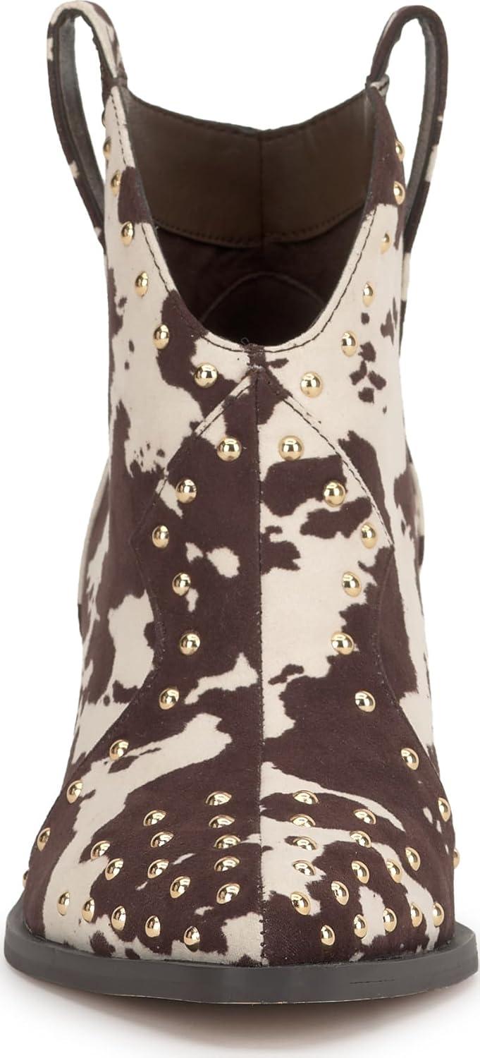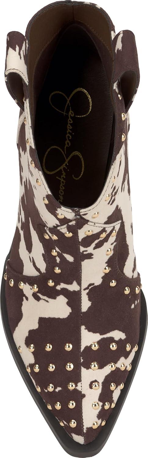 Jessica Simpson Women’s Zadie Ankle Boot(Dark Brown/White Cow Print Microsuede)
